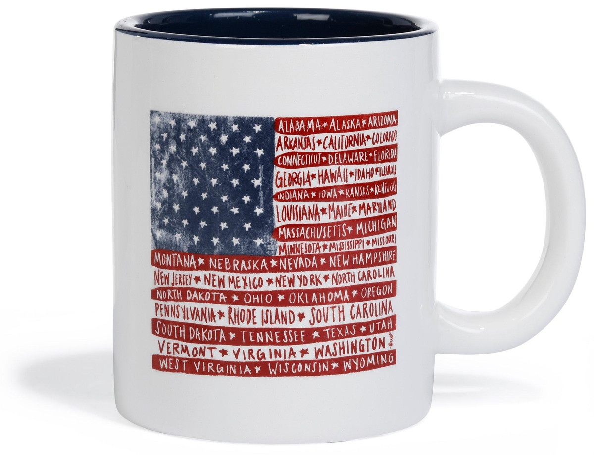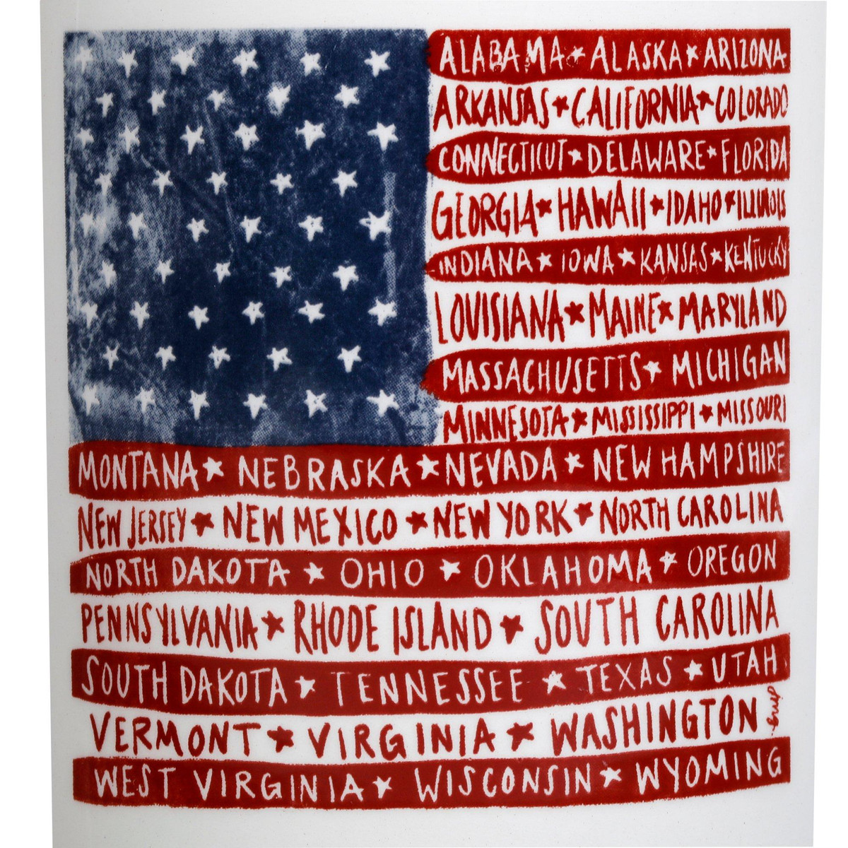 Celebrate your love for the USA with this 14 oz ceramic mug, featuring an American flag design with all 50 states in the stripes. Microwave and dishwasher safe, its perfect for sipping coffee, tea, or any favorite drink. A patriotic touch for your tableor a thoughtful gift for any Americana fan.