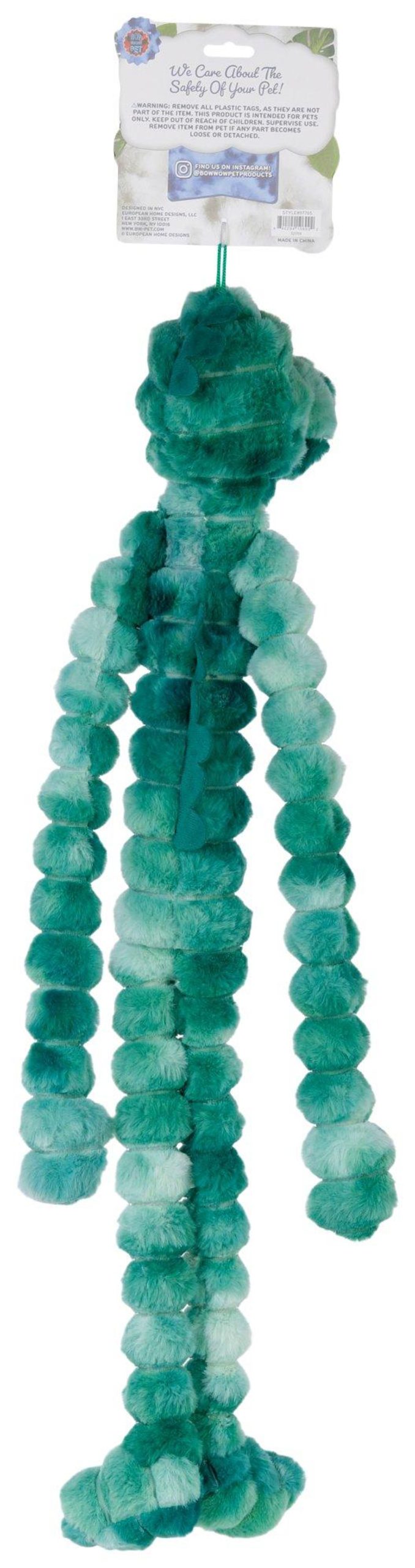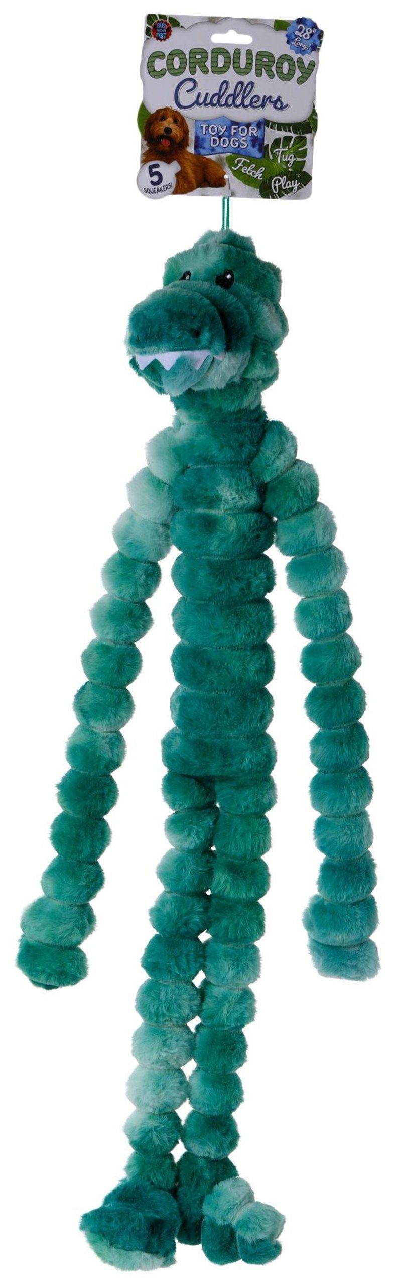 Built for interactive fun, this plush dinosaur dog toy features extra-long arms perfect for tug-of-war sessions. Vibrant fabric and embroidered eyes offer safe, worry-free play, while squeakers in the head and arms keep pups engaged. Great for tossing, tugging or snuggling during downtime. Measures approximately 28 inches.