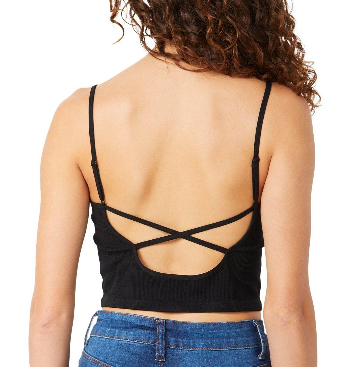 Introducing this Crossback Cropped Cami, a must-have for your wardrobe essentials. This cami features a flattering round neckline and crossback design, providing a comfortable and stylish fit. The lightly ribbed design ensures a chic silhouette, while the solid color makes it versatile for any outfit. Fabrication 94% nylon, 6% spandex.