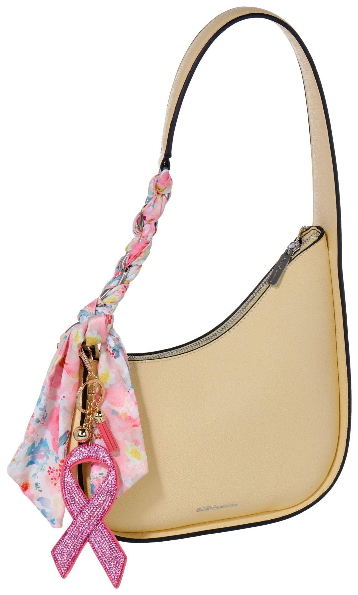 Show your support in style with this 5-inch Breast Cancer Ribbon Bag Charm. Featuring a radiant rhinestone exterior and a gold-tone lobster claw closure, it is a meaningful and elegant accessory for any bag or keychain.
