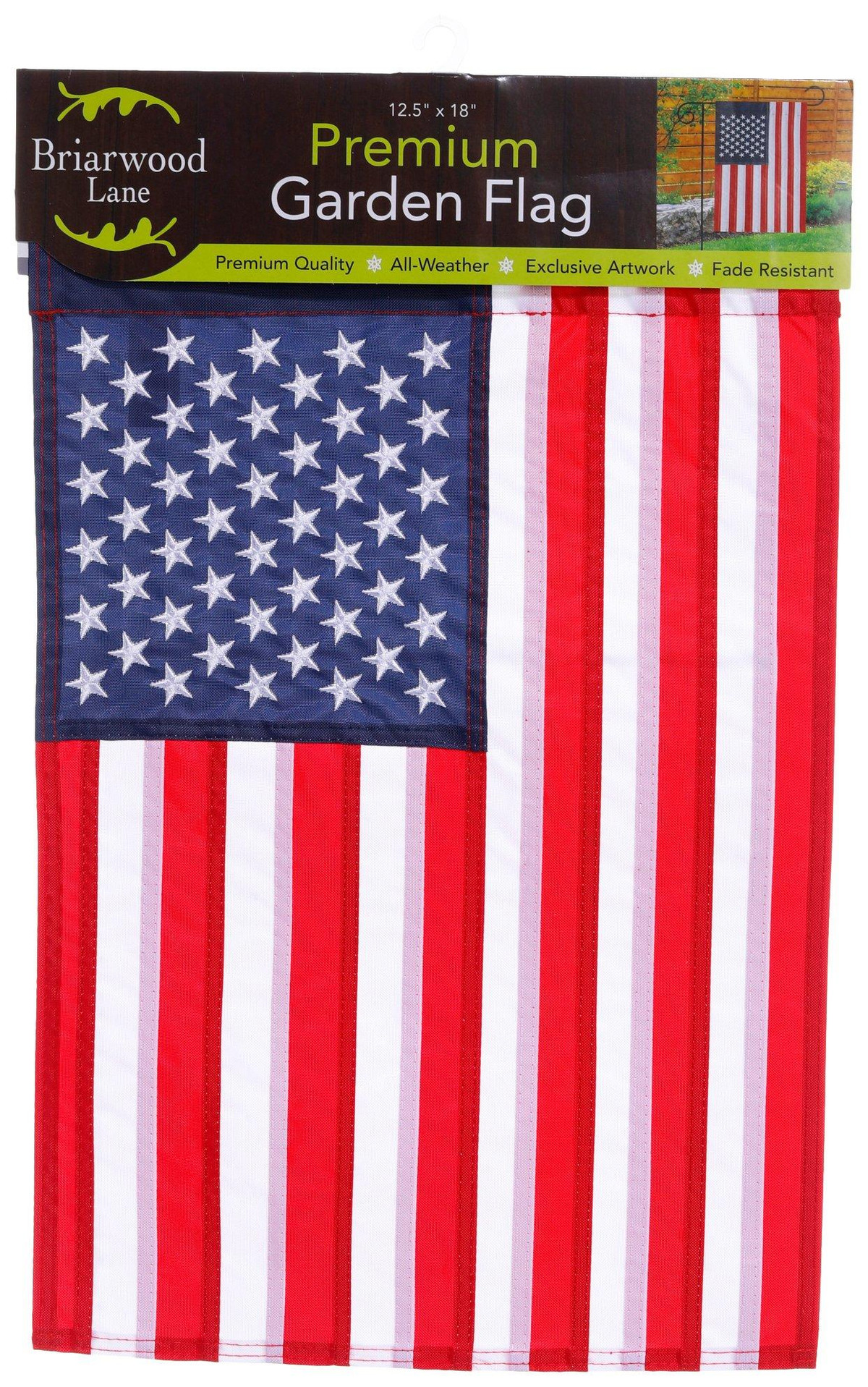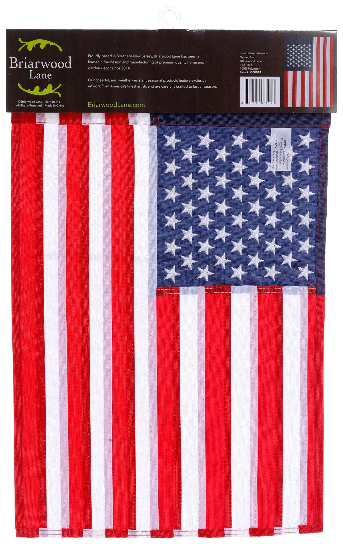 Add a colorful, welcoming touch to your home and garden with a premium decorative flag from Briarwood Lane. Our original artwork printed on burlap material designed for outdoor display provides unique designs that are as durable as they are beautiful! The text reads correctly on both sides. Flag stand sold separately. Fabrication is 100% Polyester. Measures approximately 12.5 in x 18 in.