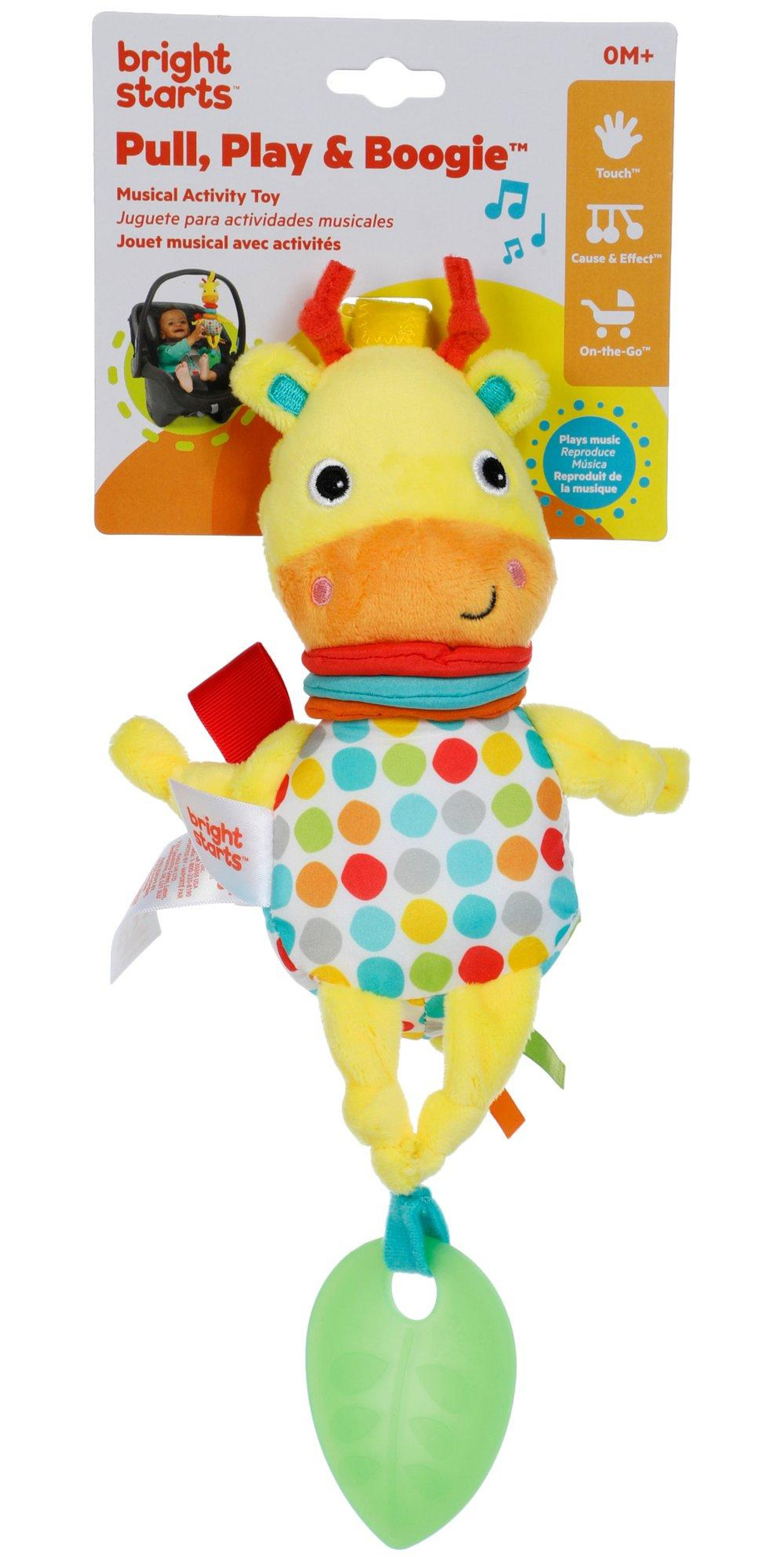 Encourage sensory development with this Pull Play & Boogie Musical Activity Toy. Shaped like a playful giraffe, it plays music and features interactive elements that respond to touch, promoting cause-and-effect learning. Compact and portable, its ideal for on-the-go entertainment. Wipe clean with a damp cloth for easy care.