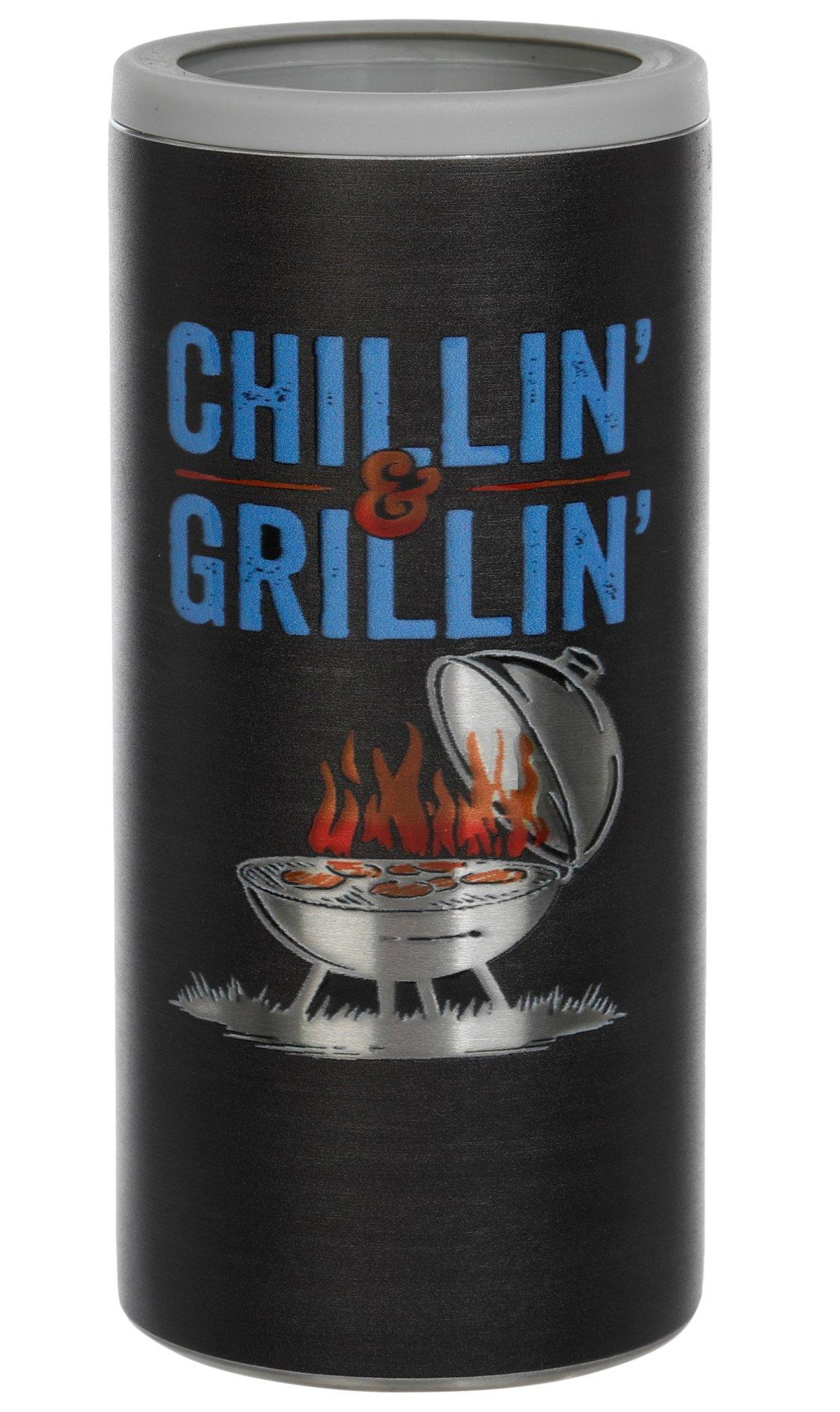 Enjoy your favorite slim canned beverages at the perfect temperature with this 12 oz Grillin Chillin Slim Cup Cooler! Designed to keep drinks cold for over 9 hours, this cup is perfect for any occasion. Its sleek, stemless design makes it easy to hold and stylish to use. Whether you’re sipping on a chilled cooler or your favorite energy drink, this cup cooler ensures your drink stays just right. Measures approximately 6.25 in x 2.75 in.