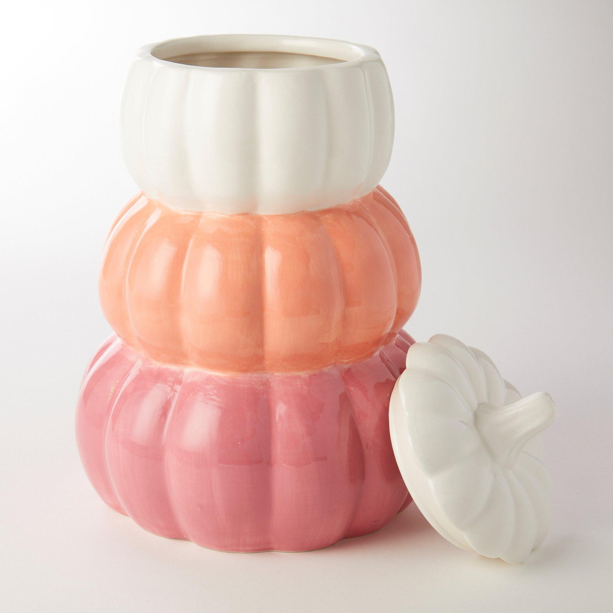 This 12 inch ceramic stacked pumpkin canister features a smooth gradient effect and a matching lid, making it a charming addition to your seasonal decor. Ideal for centerpieces or festive storage, its sculpted design adds a playful yet elegant touch to Halloween or autumn displays. Whether used for treats or simply as a decorative accent, it brings warmth and whimsy to any space.