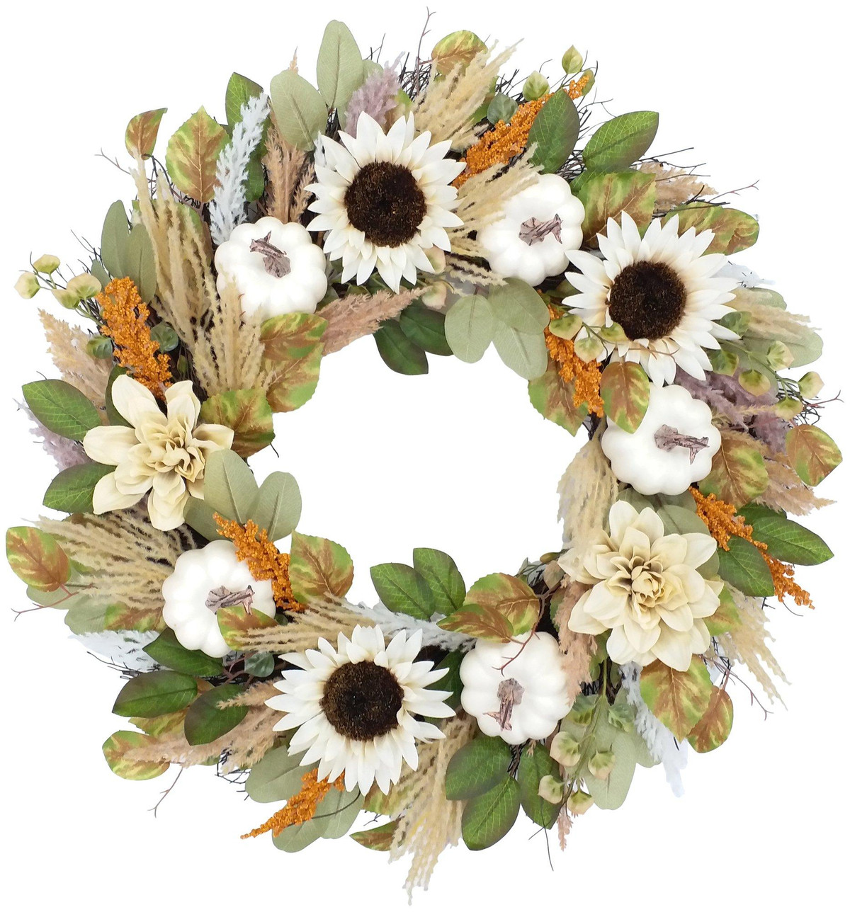 Brighten the Season 26 in. White Sunflower Pumpkin Wreath