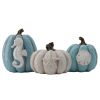 Bring seaside serenity to your fall décor with this 8-Inch Shell Pumpkin. Made of 100% polyresin, this white pumpkin features a textured sand-like top, a coiled shell stem, and is beautifully adorned with seashells, blue starfish, and coastal creatures. A perfect harvest coastal blessing. Measures 7.4in. x 7.4in. x 7.8in.