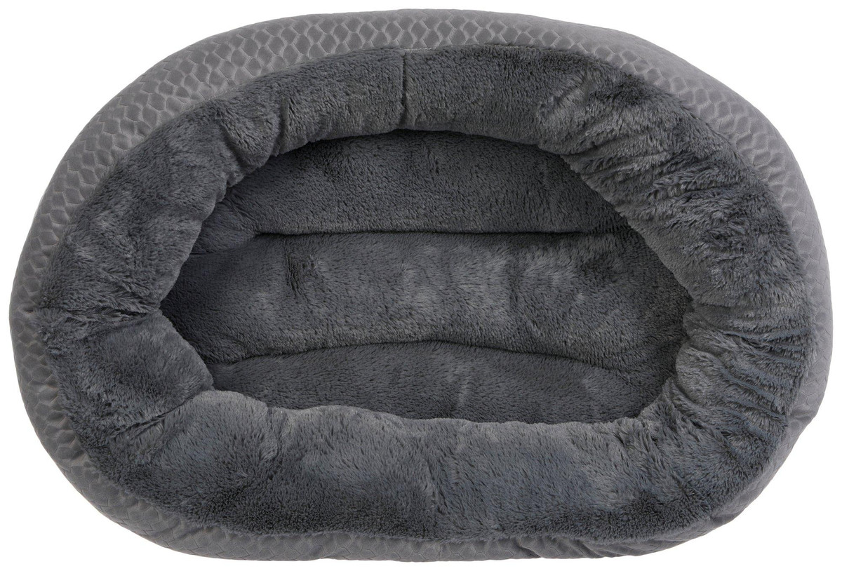 Treat your pet to cozy comfort with this Luxury Comfort Pet Bed, featuring an embossed geometric pattern on solid color fabric and soft faux rabbit fur. The plush, resilient cushion fill supports your pets body, while the breathable design promotes airflow. Durable and easy to maintain being machine washable, its the perfect blend of comfort, style and convenience for everyday lounging. Measures 24 in x 18 in.