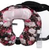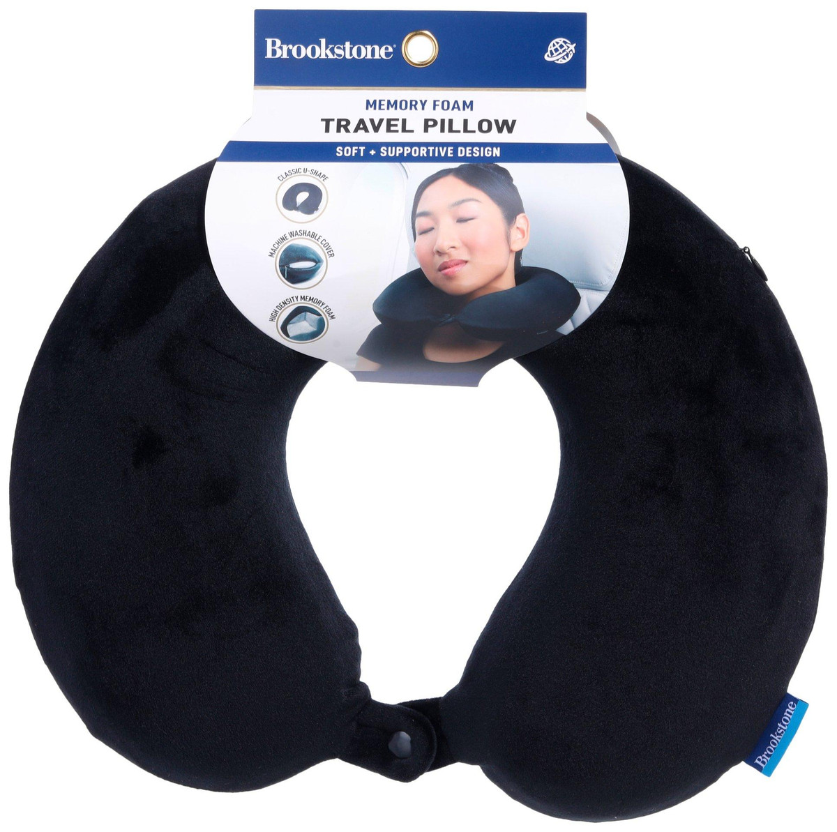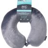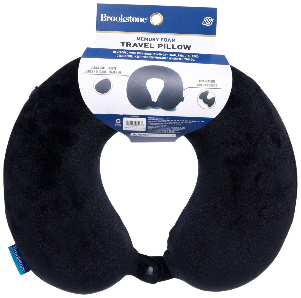 Journey into comfort with this Memory Foam Travel Pillow. Made from durable materials, it provides the perfect combination of support and softness. The memory foam pillow contours to your neck, ensuring restful sleep on the go. Features a classic U-shape, with a snap closure at the neck and has a machine washable cover. Fabrication is 93% Polyester, 7% Spandex. Measures approximately 12.6 in x 11.8 in x 3.75 in.