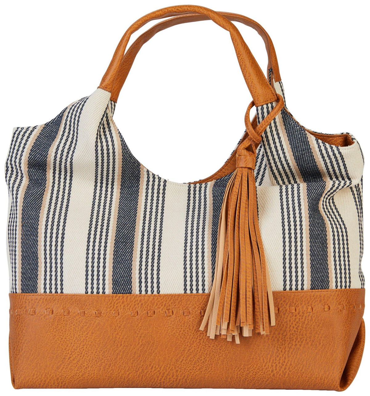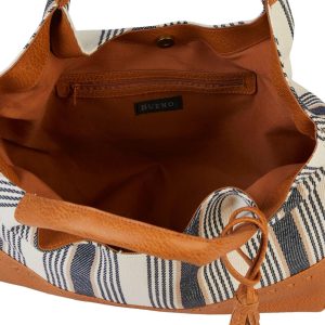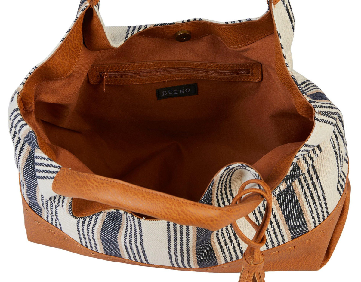 Updated with stripes for a stylish look, this zip-top tote bag from Bueno is a chic addition to your everyday styles.