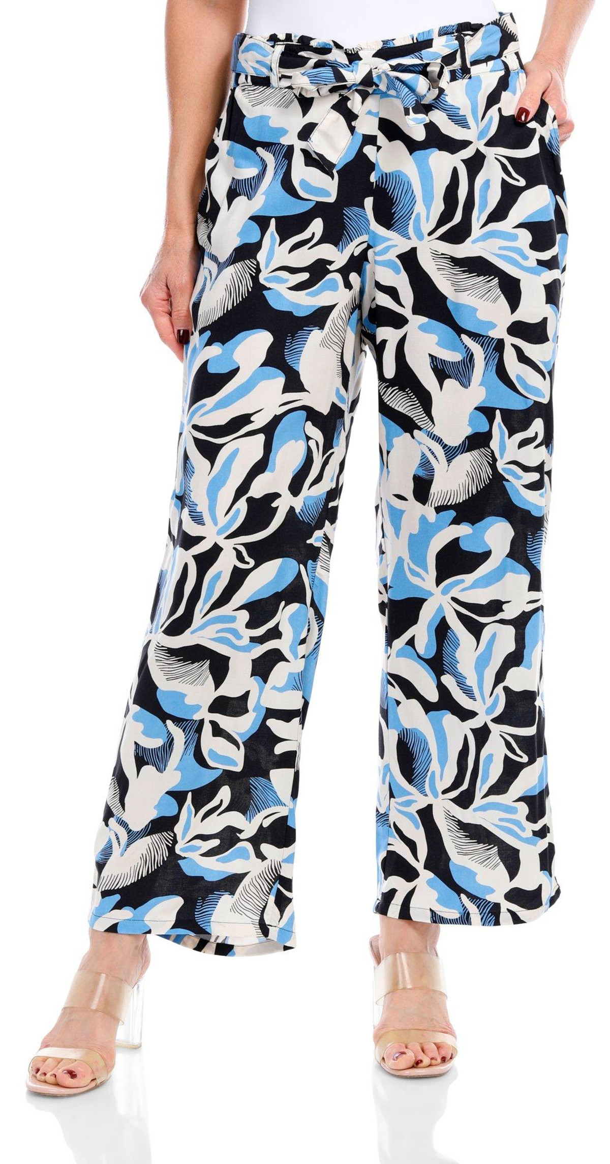 Bunulu Womens Print Wide Leg Pull On Pants