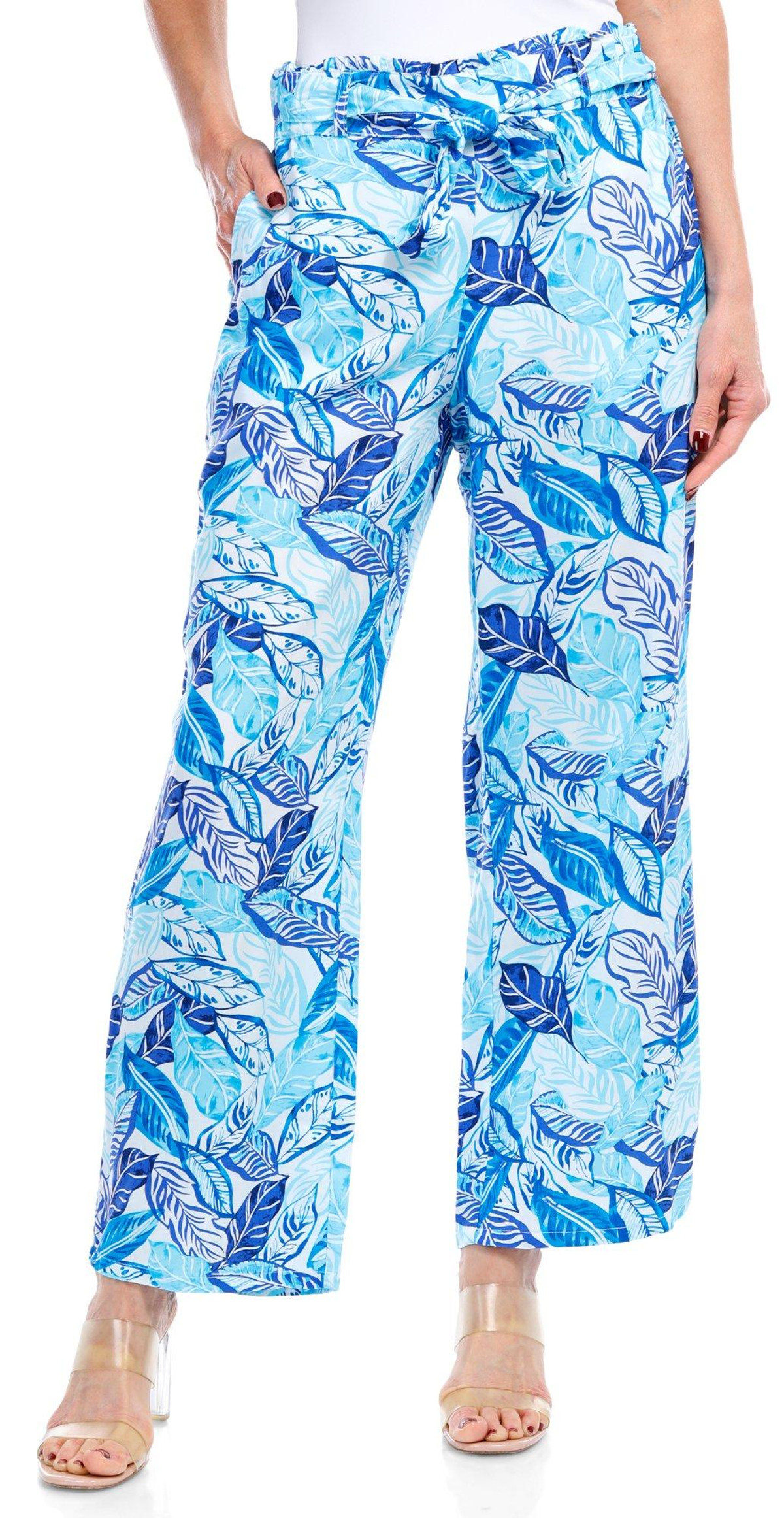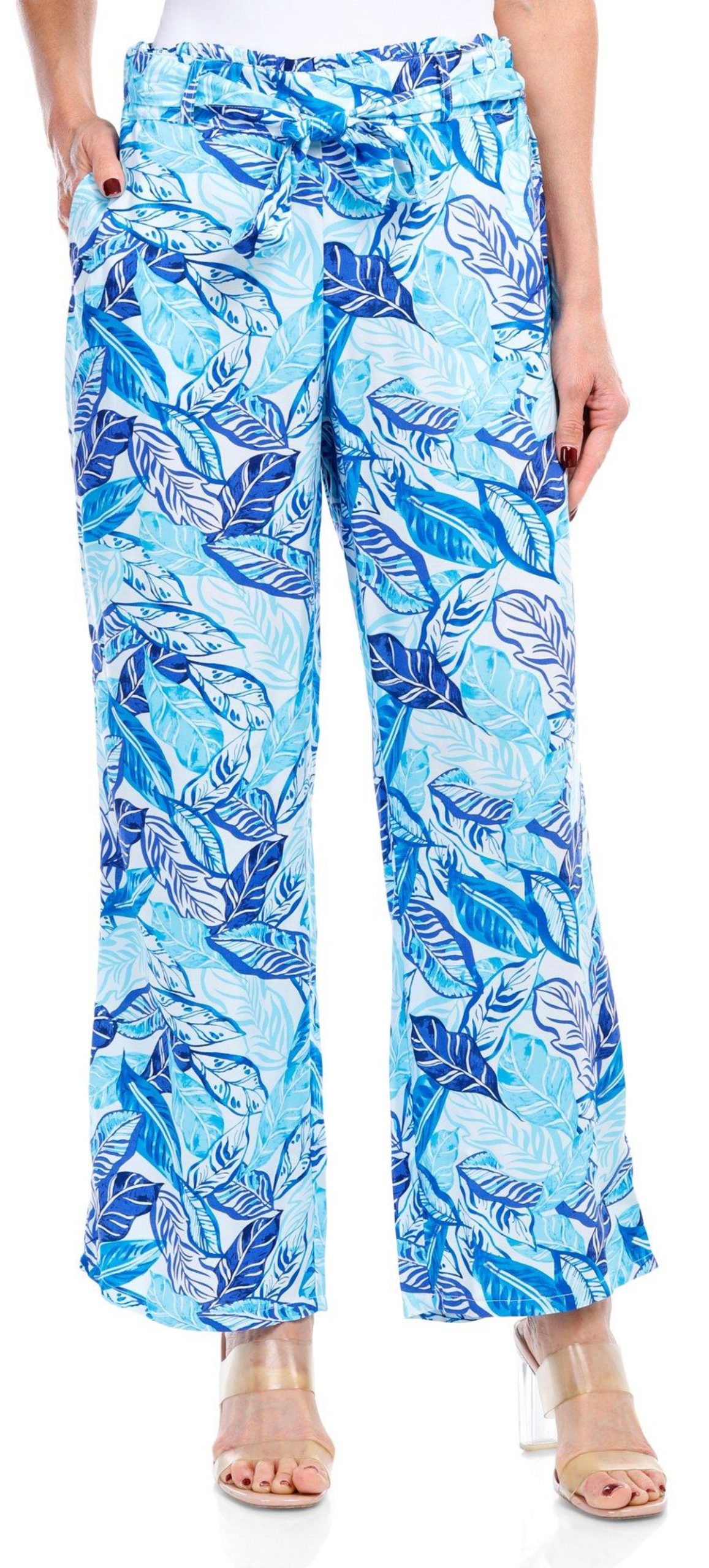 Embrace effortless style with our bohemian-inspired palazzo pants. The wide legs create graceful movement, while the eye-catching print adds a touch of whimsy. These pants come with two convenient side pockets and a removable tie belt for versatile styling. Perfect for warm days and carefree vibes! Inseam measures approximately 25 in. Fabrication is 100% rayon.
