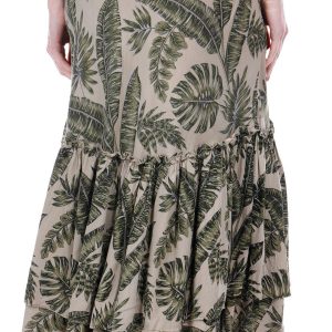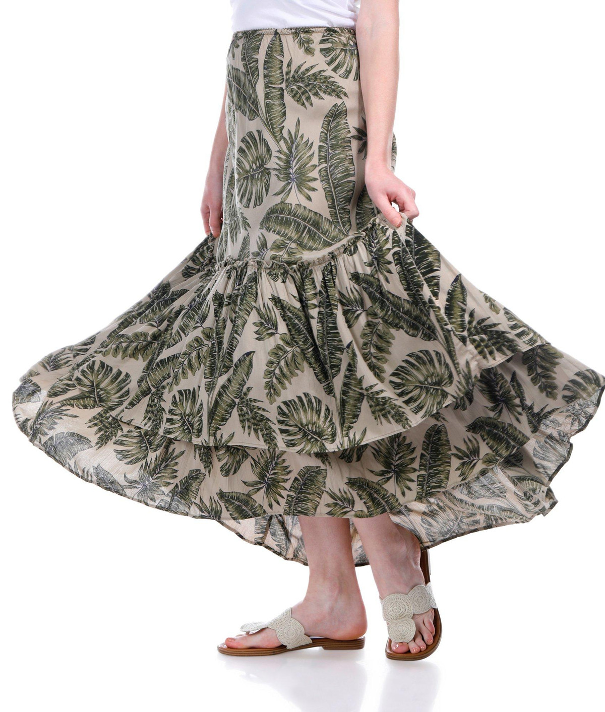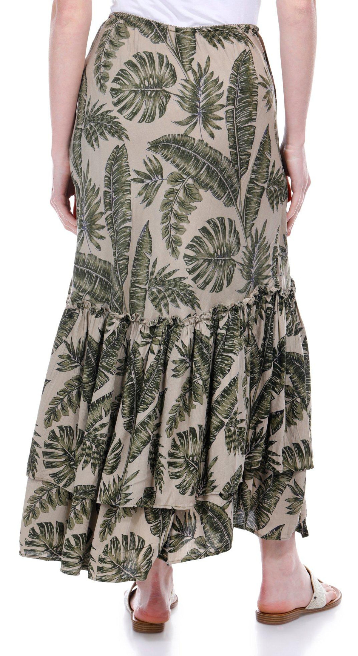 Introducing the Women’s Ruffle Tier Palm Leaf Maxi Skirt, crafted from 100% rayon for a lightweight and comfortable fit. This stylish skirt features a vibrant palm leaf print that adds a tropical touch to your wardrobe. The pull-on waistband ensures ease of wear, while the ruffle tier design adds a playful and elegant flair. Perfect for casual outings or beach days, this maxi skirt combines comfort and chic effortlessly, making it a must-have addition to your collection.