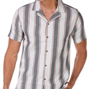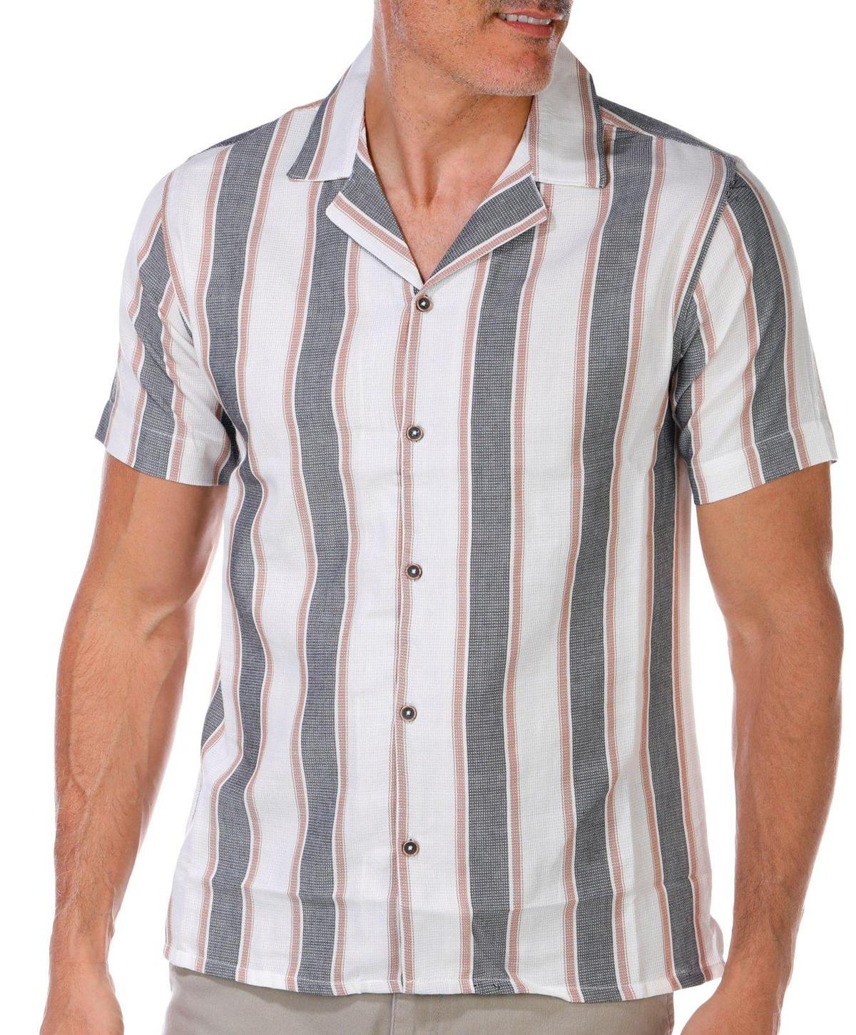 Burnside Men's Short Sleeve Buttoned Stripe Texture Shirt