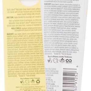 Burts Bees Naturally Clean Hand Cream is formulated with Shea Butter and Baobab Oil to soften and nourish dry hands. This luxurious hand cream nourishes hands with moisture and a rich buttery texture that goes on smoothly and leaves hands feeling silky smooth. Indulge in a moisturizing hand cream formulated with the natural origin ingredients you love from Burt’s Bees.