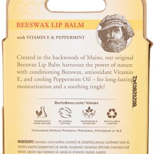 This Burt’s Bees 4 Pc. Vit E & Peppermint Lip Balm Value Pack features vitamin E and peppermint moisturizing beeswax lip balms. Free of parabens, phthalates, petrolatum, and SLS. Cruelty-free. Net wt. 0.6 oz., 0.15 oz. each.