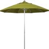 This traditional 9 foot California Umbrella market style is a top seller and offers the residential owner a beautiful market design without taking over their space. The bronze aluminum frame has a simple crank to open and push- to- tilt design as well as aluminum ribs to match. Canopy features Sunbrella fabric that is made from acrylic that is solution dyed that has SPF 50, and an overall life of 5+years. Base to top measures: 101”.