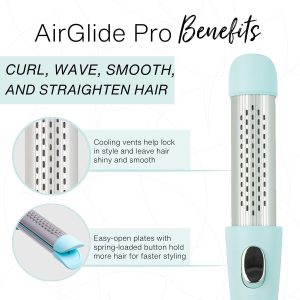 Wave, curl, smooth, or straighten. This heated styling tool features a ventilated top that releases cool air to set your look, stop heat damage, and make any style a breeze.