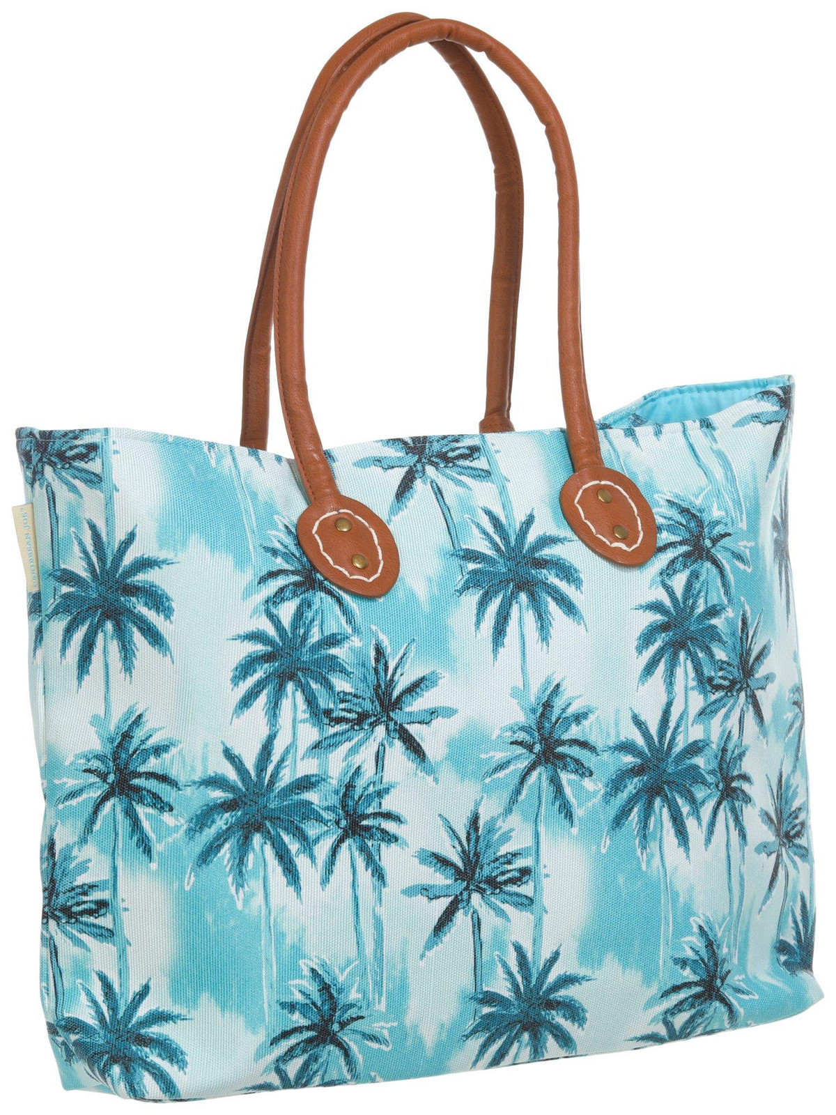 Keep all of your essentials safe and organized on your next beach adventure with this colorful print handbag! It features a colorful palm tree print pattern, double handles, zipped main opening, interior slip pockets, and a bonus wristlet. Measures approximately 7 in x 12 in x 16 in.