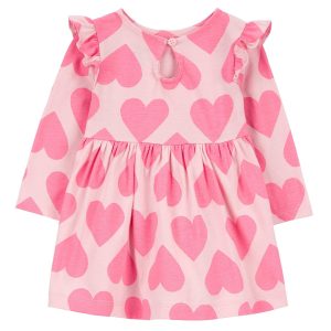 Carters Baby Girls All Over Hearts Long Sleeve Dress