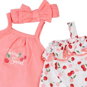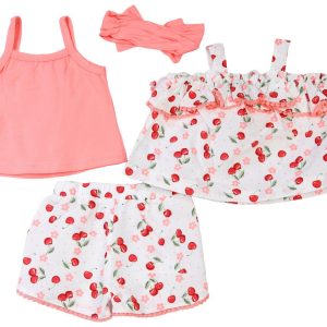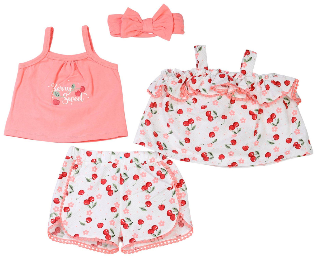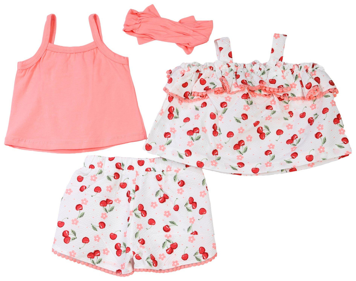 Add sweet style to warm days with this Baby Girls 4 Piece Seersucker Short Set. Featuring two sleeveless tops, each designed to coordinate with the included shorts, the set offers mix-and-match versatility along with a matching headband. Ideal for outdoor play or casual outings. Machine wash cold for easy care.