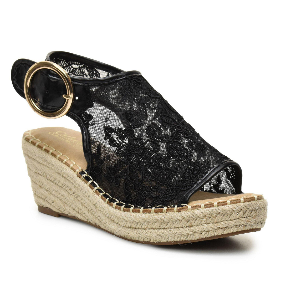 A gleaming buckle secures a comfortable fit on this breezy mesh sandal, designed with a cushioned footbed and wedge heel for all-day support on any adventure. Featuring a 3 inch heel, adjustable ankle strap with buckle closure and synthetic upper/textile lining/rubber sole.