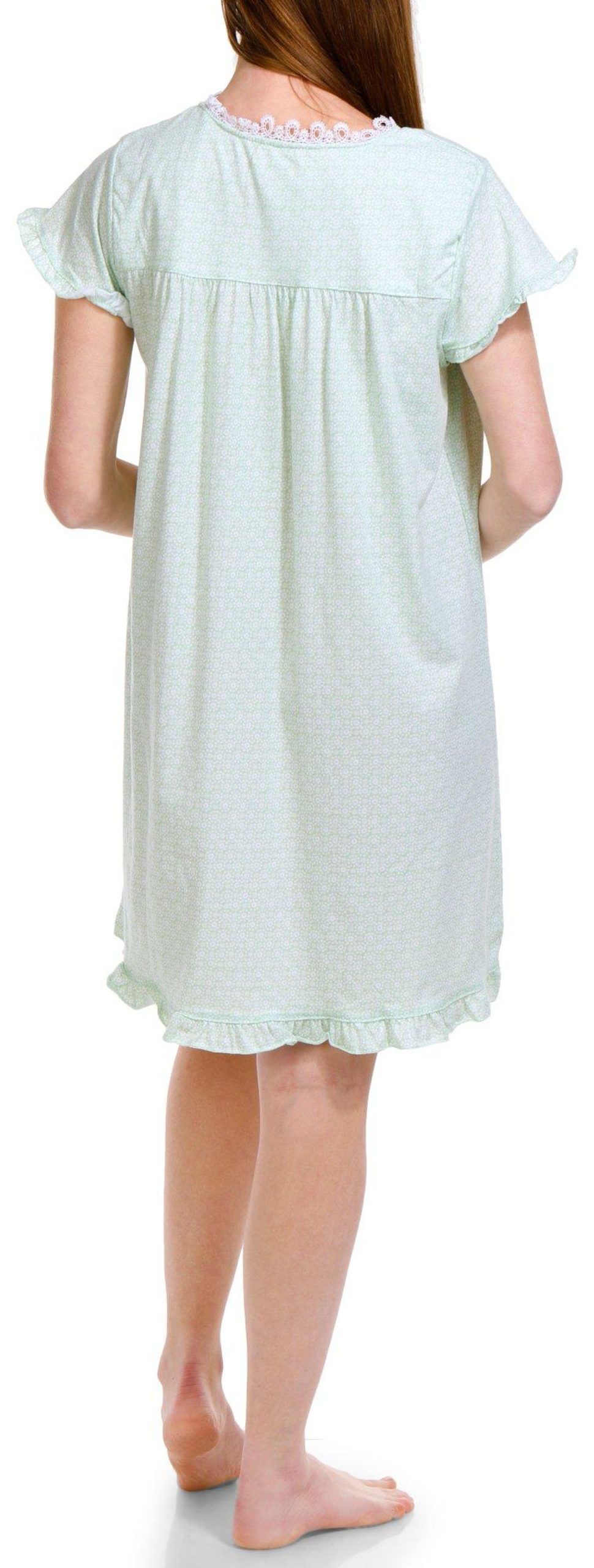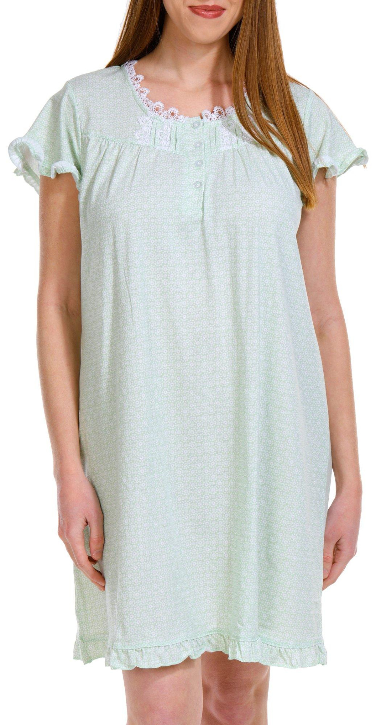 Embrace timeless elegance with our Short Sleeve Night Gown. This charming night gown features a delicate micro floral print pattern and exquisite lace trim details that add a touch of sophistication. The buttoned neckline and ruffled hem and sleeve details enhance its classic appeal. Made from soft, breathable fabric, it ensures a comfortable and restful night’s sleep. Perfect for lounging or sleeping, this night gown combines elegance and comfort effortlessly.