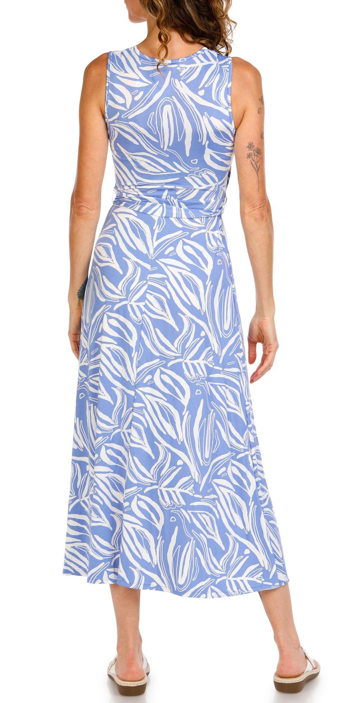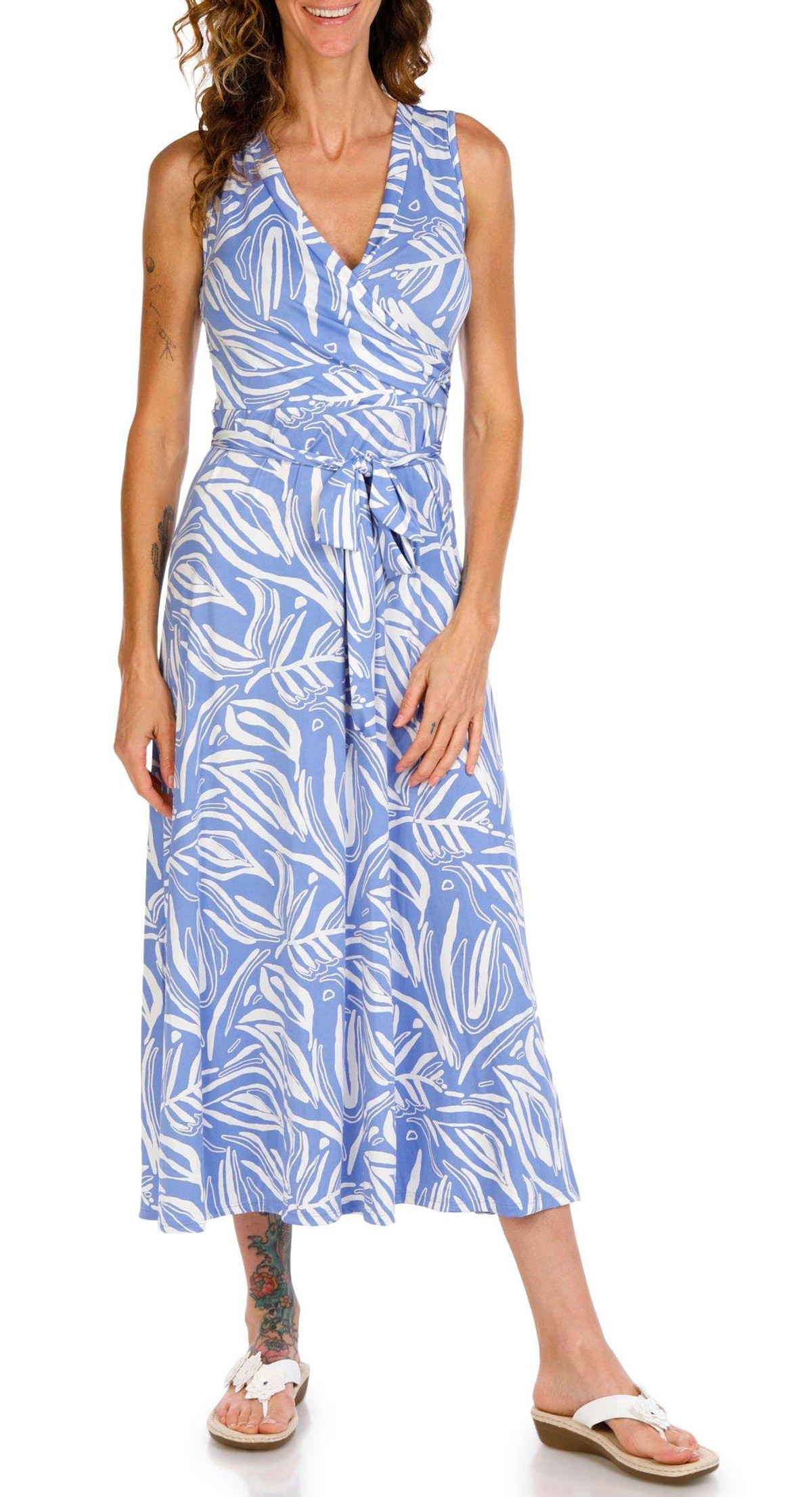 Embrace effortless elegance in this Women’s Sleeveless Wrap Maxi Dress. Featuring a chic print, flattering V-neckline, and a classic wrap design, this maxi-length dress flows beautifully for any occasion, from garden parties to beach strolls. Fabrication is 95% cotton, 5% polyester.