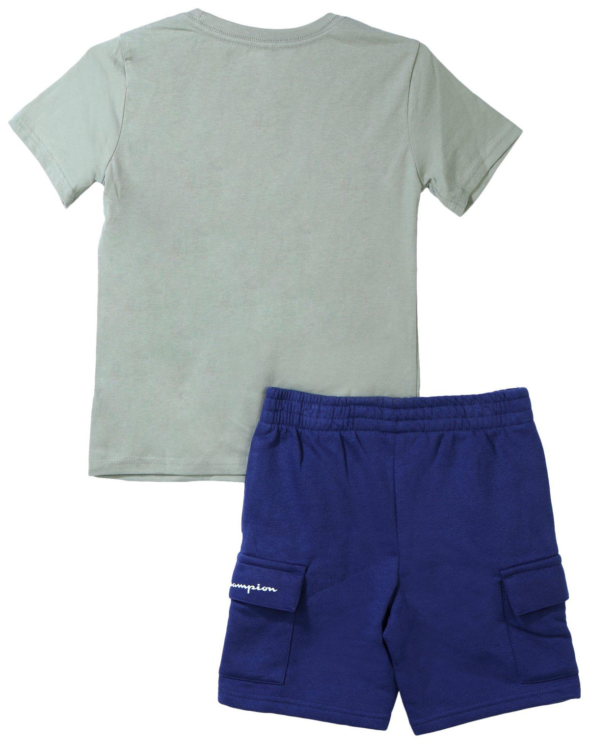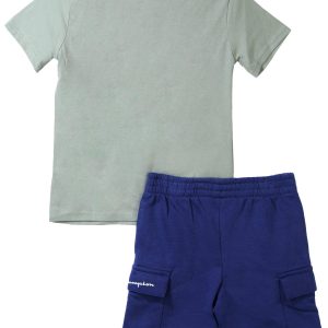Dress your little one in comfort and style with this 2 Piece Shorts Set. This set includes a logo graphic tee that adds a playful touch to his outfit. Paired with cloth shorts featuring double side slip pockets, it ensures practicality and ease for active days.