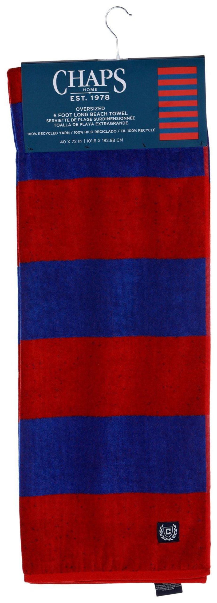 Make a sustainable choice with our oversized striped Beach Towel, crafted from recycled yarn for ultimate softness and absorbency. This towel features classic striped detailing, adding a touch of timeless elegance to your beach outings. Its oversized design ensures ample coverage, perfect for lounging or drying off after a swim. Enjoy the perfect blend of comfort and sustainability with this stunning towel! Measures approximately 40 in x 72 in.