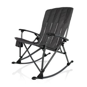 The CHICAGO BEARS Outdoor Rocking Chair is the a fan favorate at tailgates and backyard BBQs. Folding rocking chair with mesh cup holder in armrest; Includes carrying bag; Made of 600D PVC with steel frame; Includes: 1 Outdoor Rocking Chair, 1 Drawstring Carrying Bag with Shoulder Strap. Dimensions: 28 x 35.8 x 40.5. Weight limit 250 LBS.