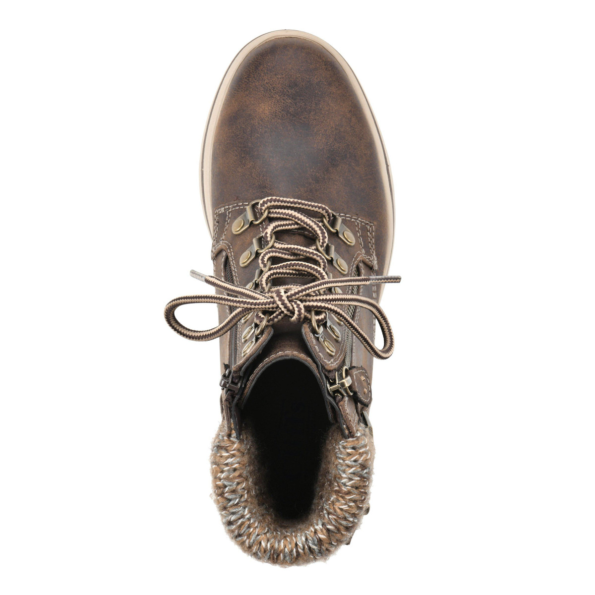 A comfortable, lightweight sole sets the stage for the Hearty lace-up boot from Cliffs by White Mountain Shoes. The city hiker gets an upgrade with decorative zipper and buckle accents. A knit collar adds a snuggly style to this cold weather staple.Features: Cushioned insole, Sporty outsole, Sweater knit collar