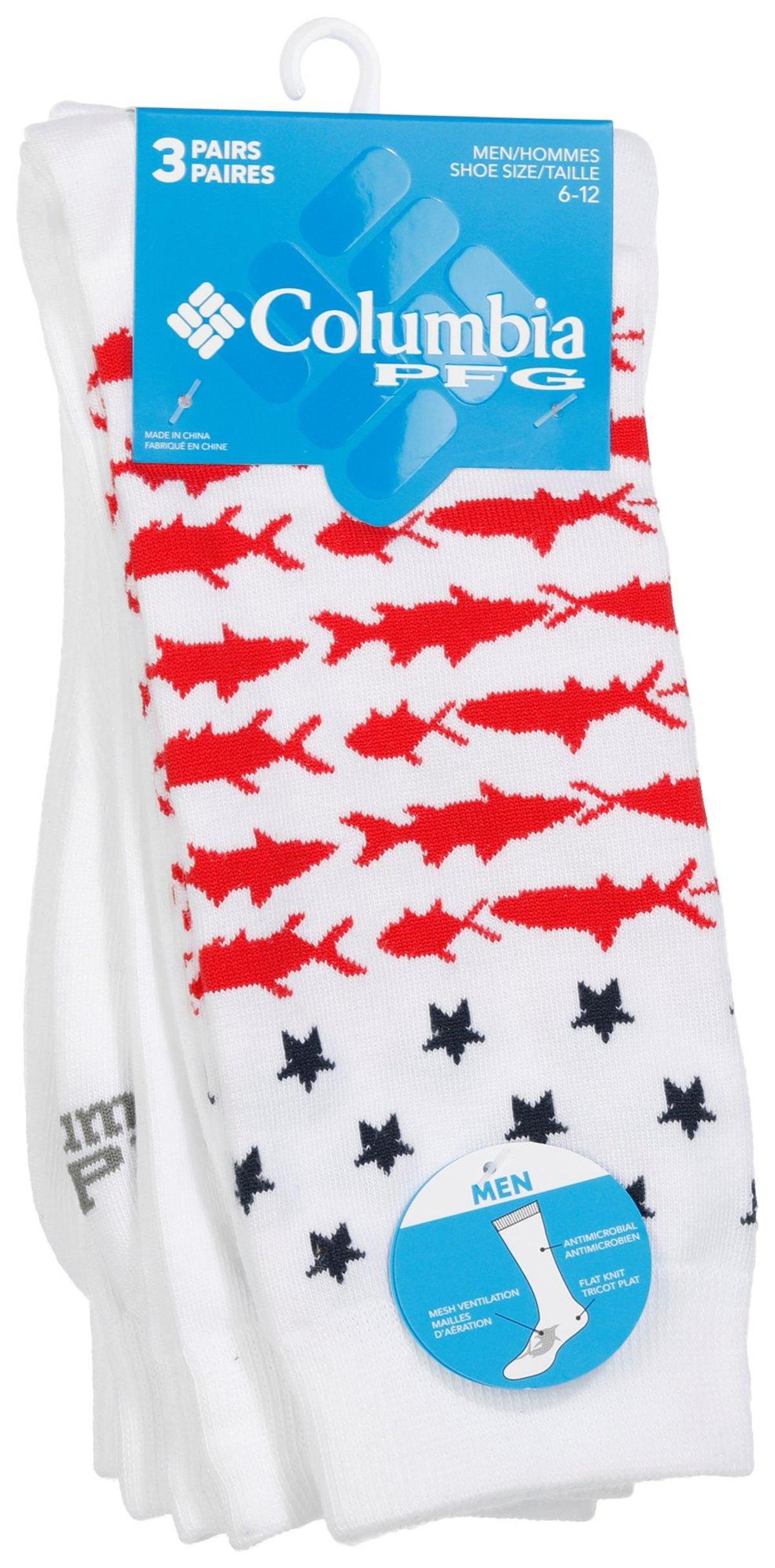 Take a trip out on the open water with the Men’s Americana Crew Socks 3-Pack. The lightweight flat knit material provides comfort, while the antimicrobial technology ensures a fresh feel. The mesh ventilation promotes breathability. Sock size 10-13 fits shoe size 6-12. Pack includes 3 pairs. Fabrication 97% polyester, 3% spandex.