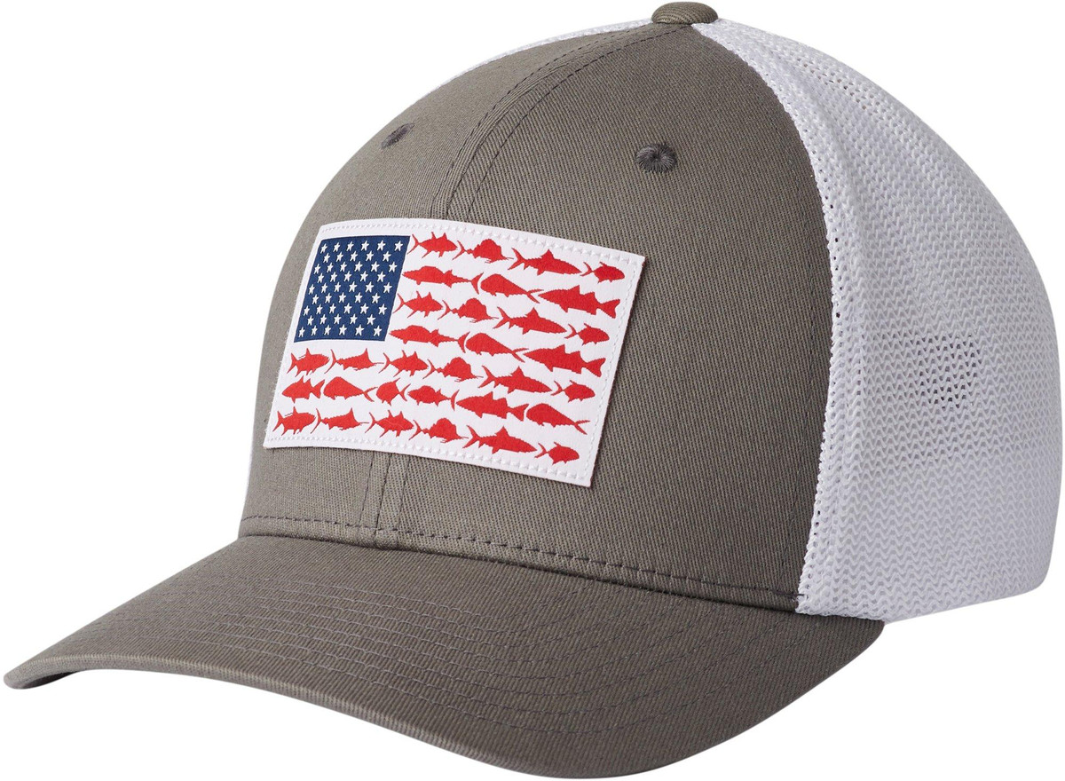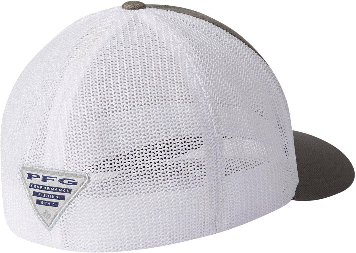 Keep each adventure going strong with this PFG Mesh hat by Columbia. Stand out from the hunting & fishing crowd in this stylish cap, featuring durable cotton fabric, an American flag fish patch on the front, PFG triangle patch on the back, a breathable mesh back, and Flexfit band for an easy stretch fit.