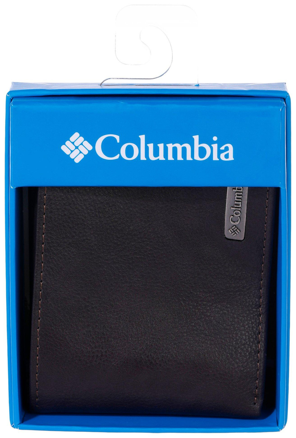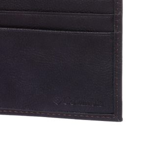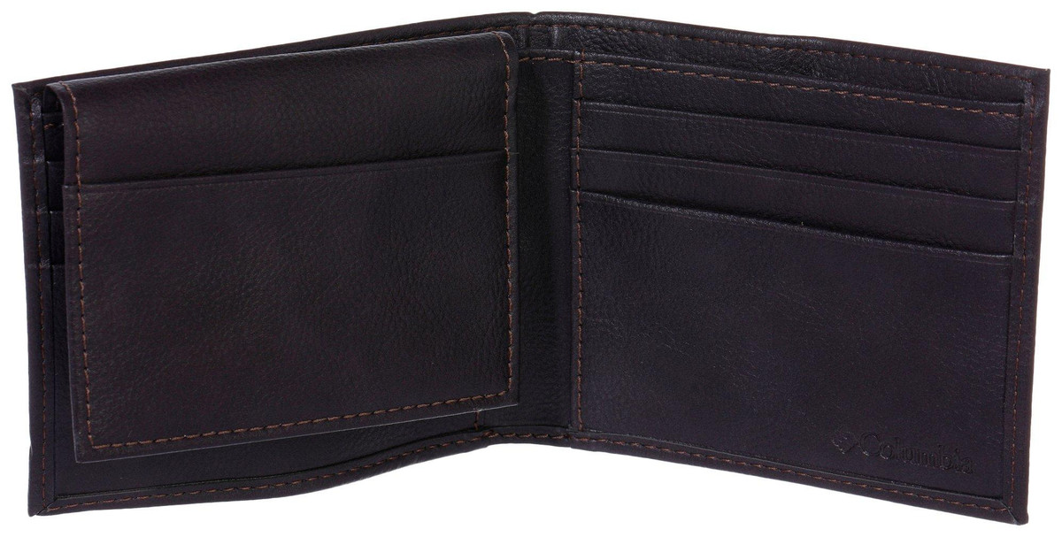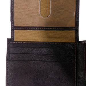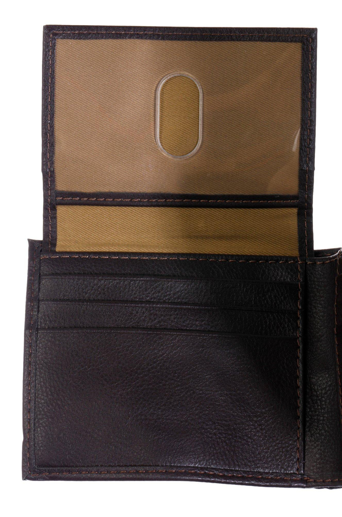 This Mens Tortilla Passcase RFID Wallet features a solid color design on soft genuine leather fabrication, brand plaque, a bifold passcase silhouette with flip-out card wing, credit card slots, slip pockets, and a billfold compartment. Measures approximately 3.5 inches x 4.5 inches.
