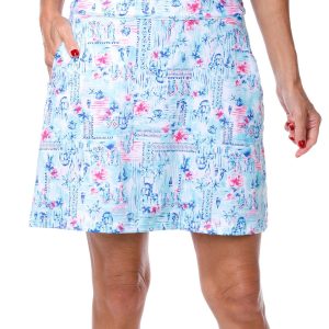 This printed golf skort combines style and functionality, perfect for both the course and beyond. Made from comfortable, moisture-wicking fabric, it features a flattering fit and vibrant print. The built-in shorts provide added coverage and flexibility, while the sleek design offers a chic, sporty look. Pair it with your favorite golf top for a complete, performance-ready outfit. Fabrication 92% polyester, 8% spandex.