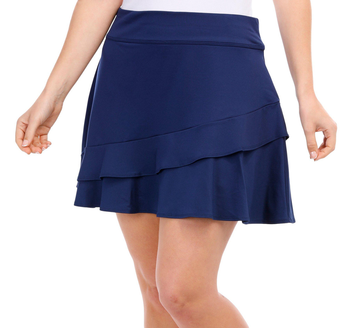 Introducing our Petite Active 18 in Skort, designed for both style and comfort. Made from a blend of rayon, nylon, and spandex, this skort features a chic solid color and a convenient pull-on waistband. The built-in shorts provide added comfort and coverage, while the faux front and back pockets add a touch of flair. Perfect for active days or casual outings, this skort is a versatile addition to your wardrobe.