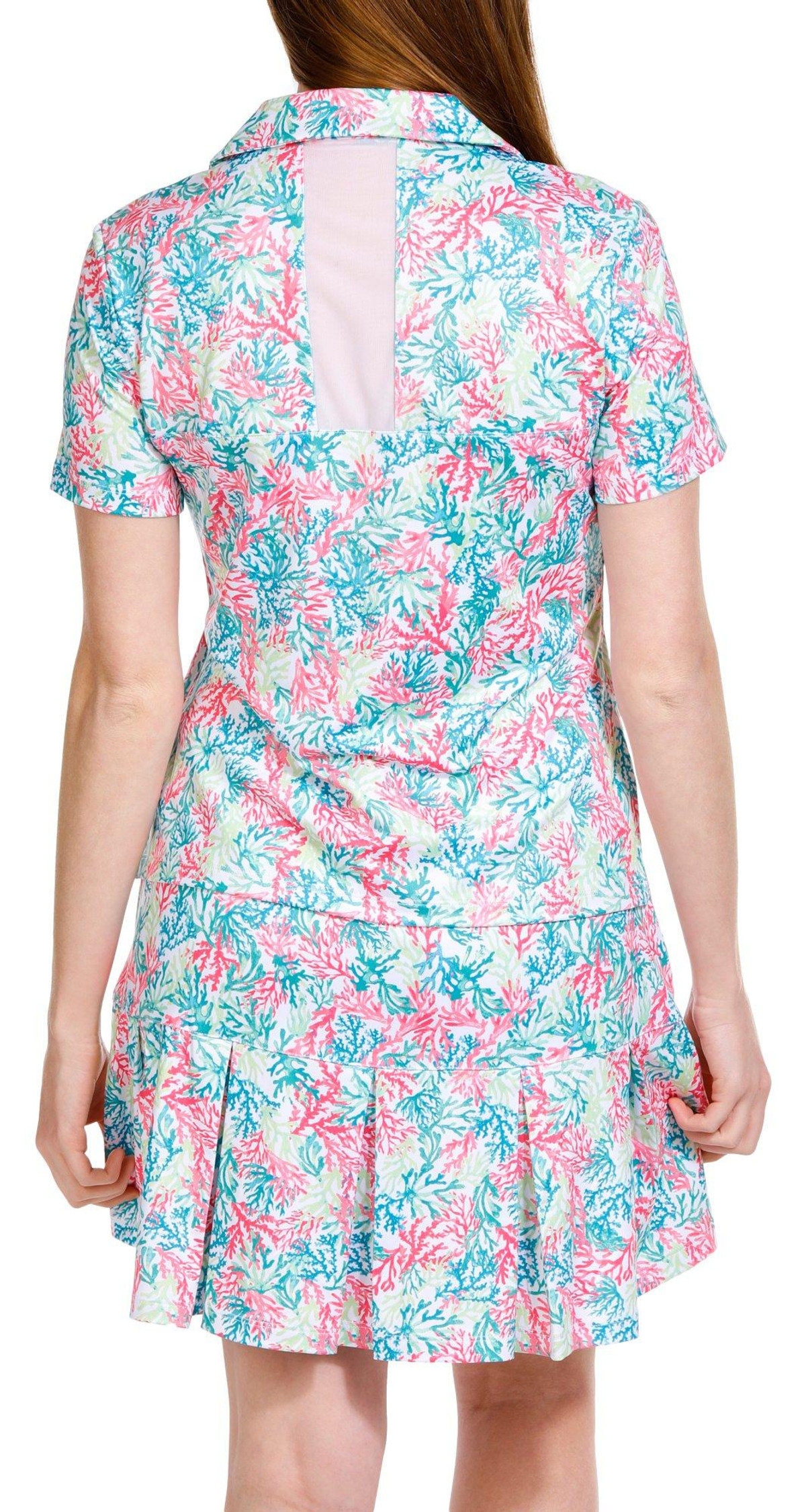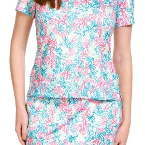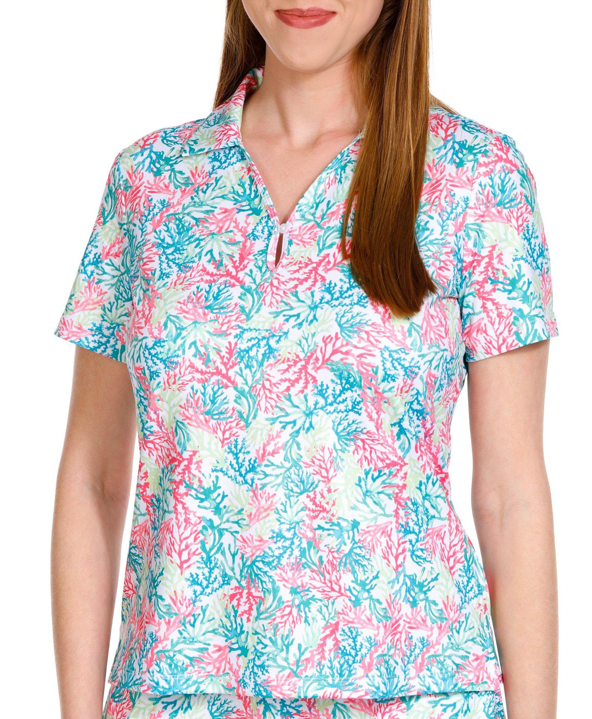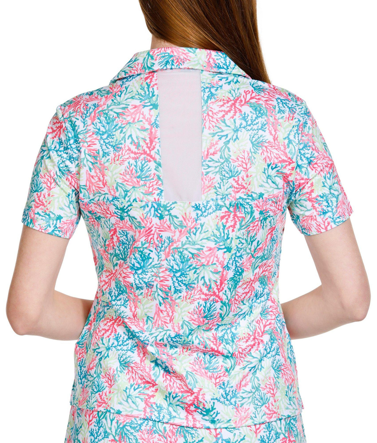 This Golf Women’s Coral Print 1/4 Zip Polo Shirt is made from a blend of 92% polyester and 8% spandex, offering a comfortable, stretchy fit that moves with your swing. The vibrant coral print adds a fresh, stylish touch, while the 1/4 zip design allows for adjustable ventilation. Perfect for a day on the course or casual outdoor activities, this polo combines performance with a chic, eye-catching design. Top length is approximately 26 inches.