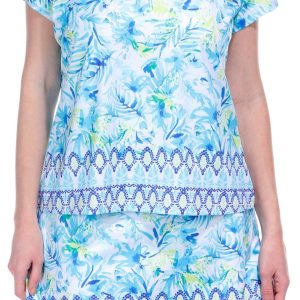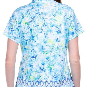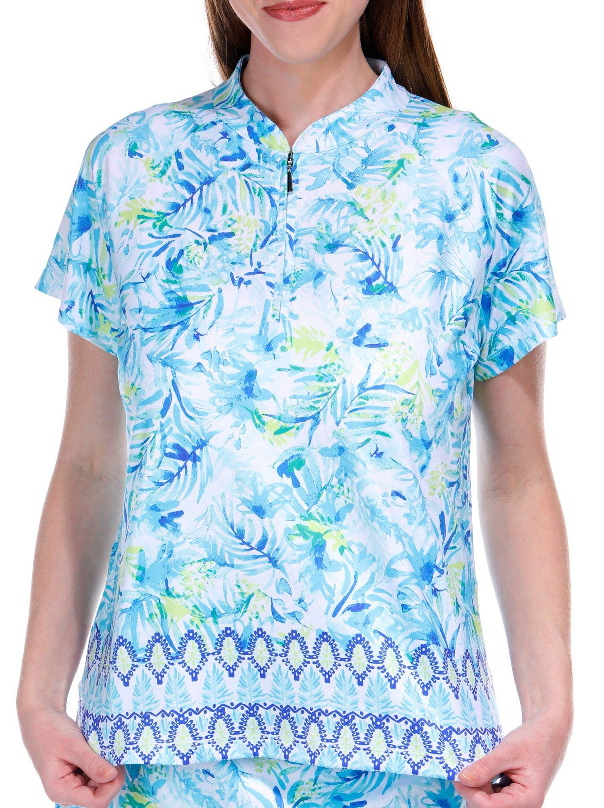 The Women’s Print 1/4 Zip Short Sleeve Top features a stylish golf border print, perfect for a day on the course. Made from lightweight, breathable fabric, it offers comfort and flexibility with a 1/4 zip design for adjustable ventilation. The short sleeves provide freedom of movement, making this top both functional and fashionable for golf or casual wear. The fabrication is 92% polyester and 8% spandex.