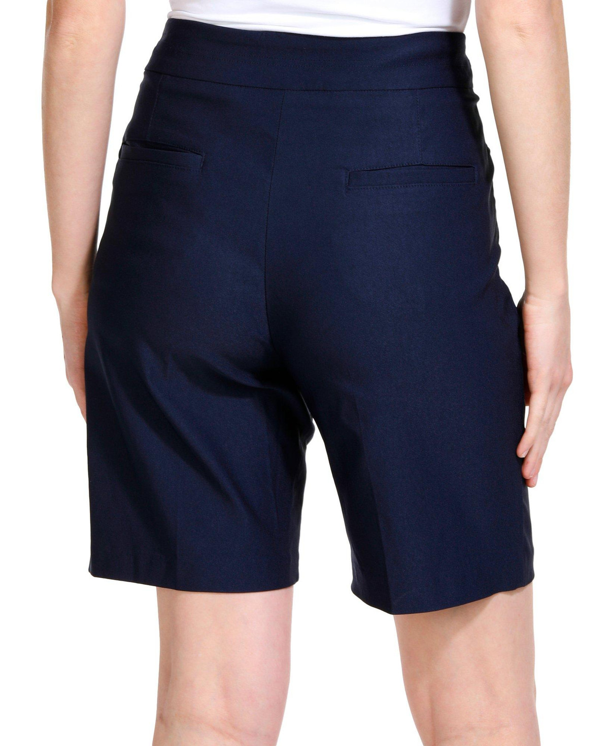 These Solid Pull On Shorts are perfect for golf and other casual activities. Featuring an elastic waistband, they provide a comfortable and secure fit. With double front and back pockets, these shorts offer ample storage for your essentials. Inseam measures approximately 9 in. Fabrication 76% rayon, 21% nylon, 3% spandex.
