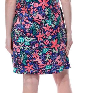 Be free and active in this Golf dress. It features a stylish graphic design on soft lightweight performance stretch fabric, a quarter zipper placket, and two side seam pockets. The top length measures approximately 32 in. Fabrication is 92% polyester and 8% spandex.