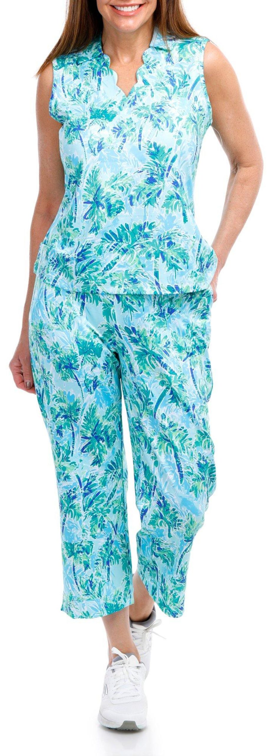 Stay cool and comfortable on the course with these printed pull-on golf pants. Featuring UPF 50 for sun protection, moisture-wicking fabric, and quick-dry technology, theyre perfect for active days. The 23-inch inseam offers a flattering fit, making these pants a stylish and functional choice.