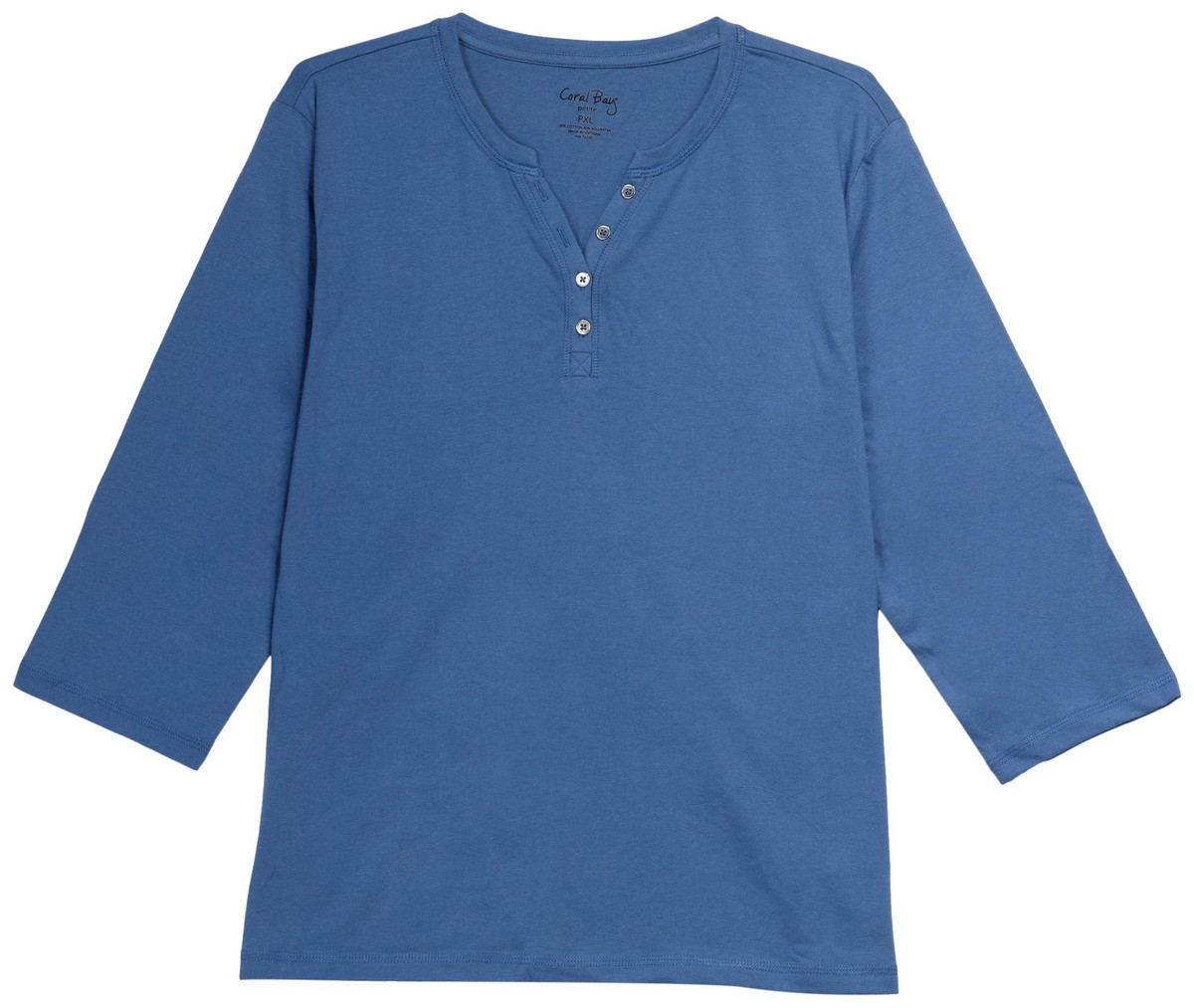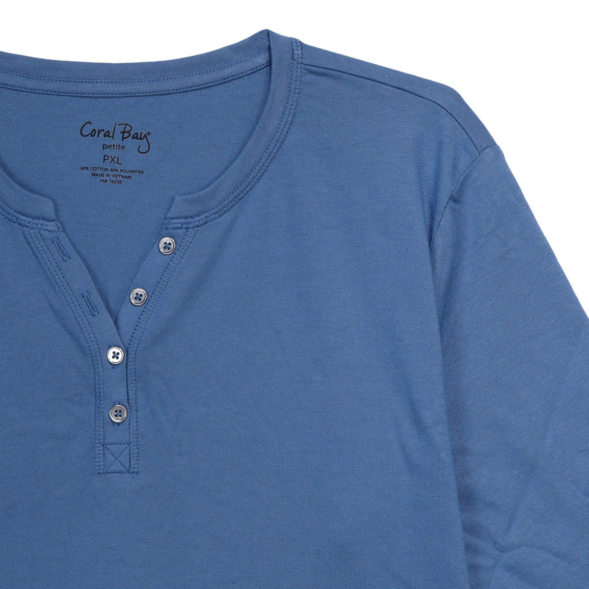 Coral Bay Petite Solid 3/4 Sleeve Henley Top
