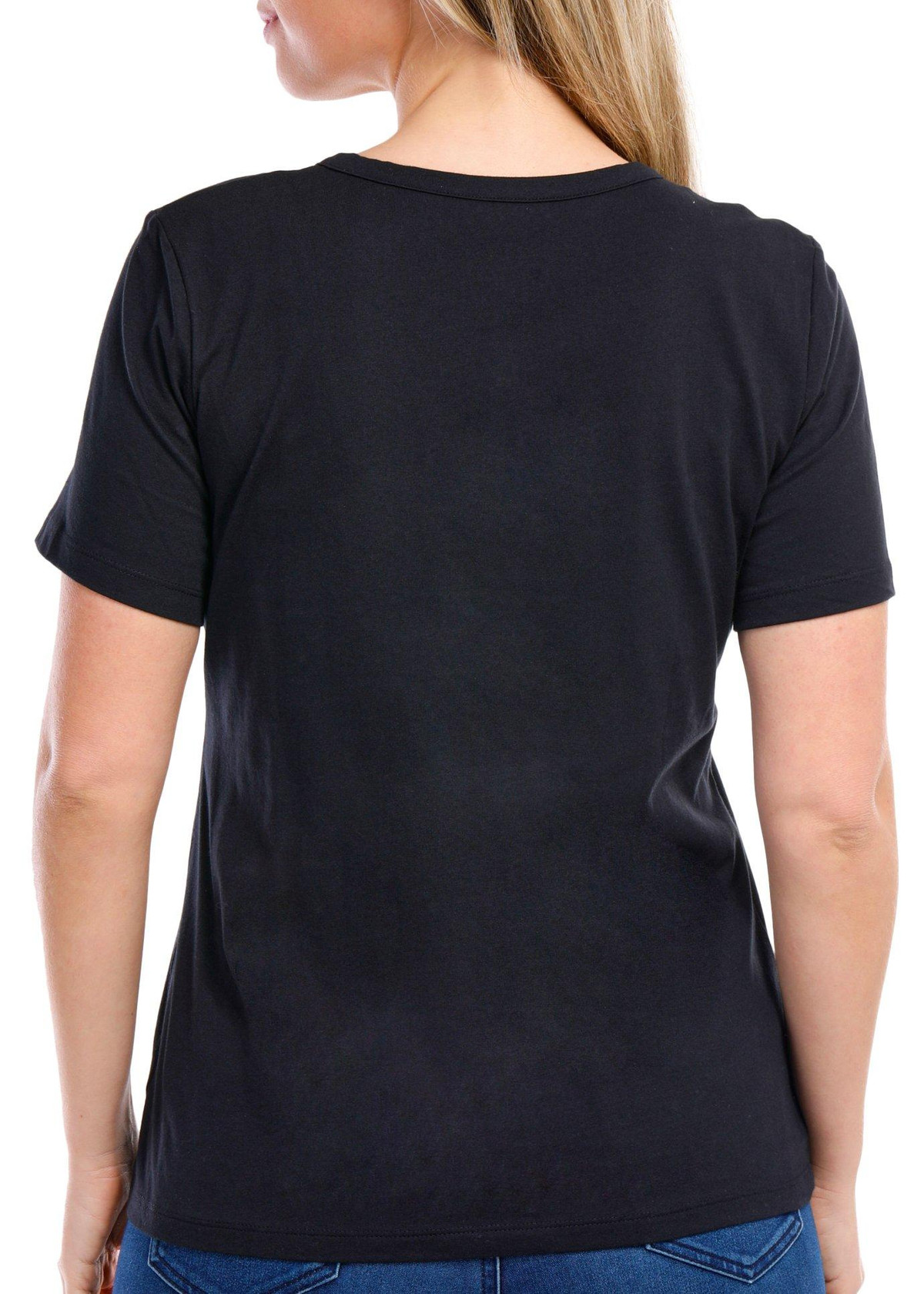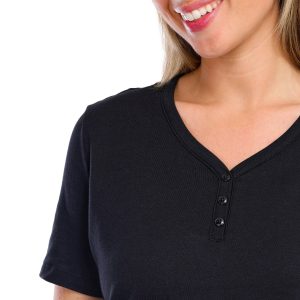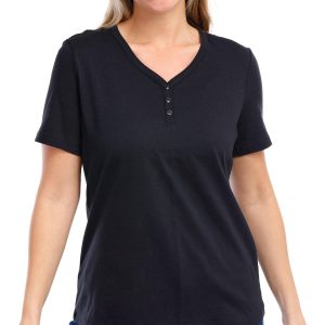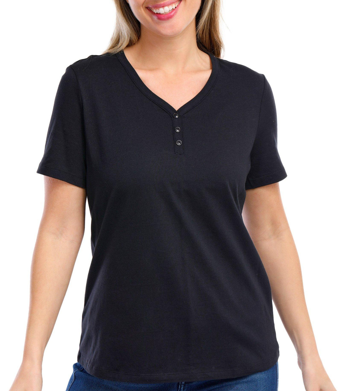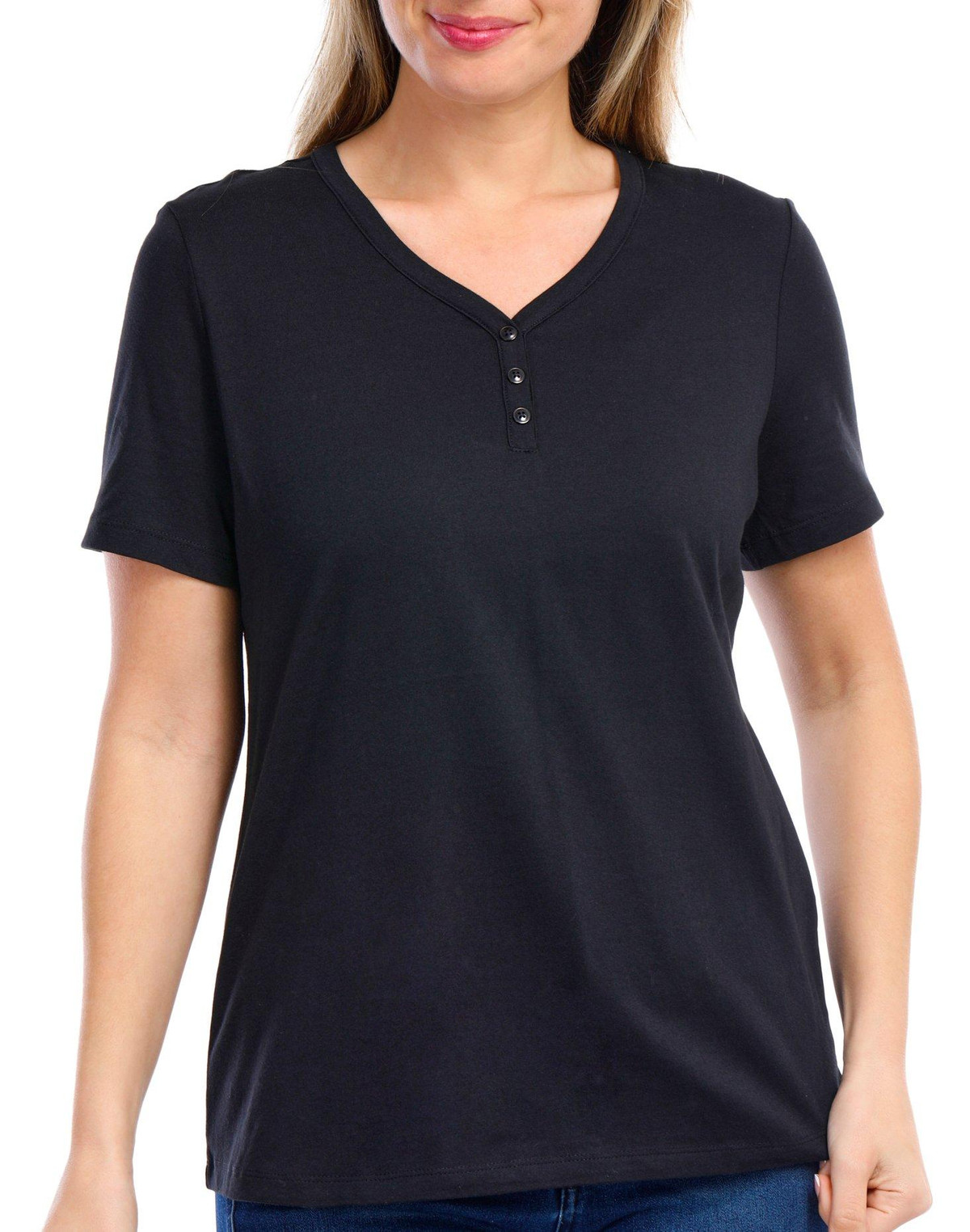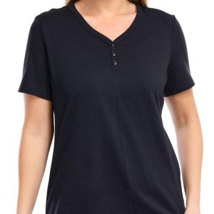 Coral Bay Petite Solid Short Sleeve Henley Button Tee