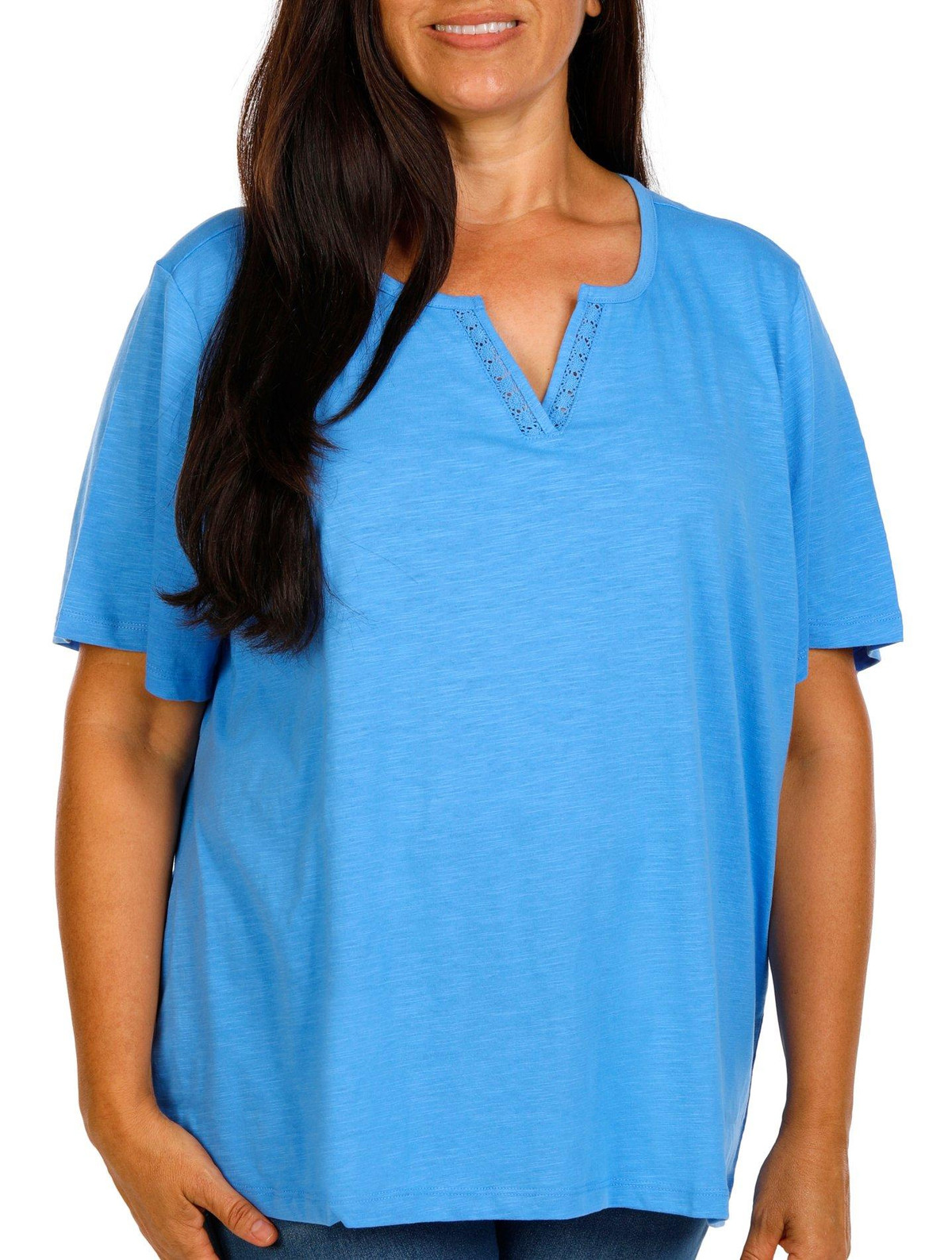 The Petite Solid Split Neckline Short Sleeve Top is a versatile and comfortable wardrobe staple. Made from 100% cotton, it offers a soft, breathable fit for all-day comfort. The split neckline adds a stylish touch, while the solid color design makes it easy to pair with any bottoms. With a 24-inch length, this top is perfect for casual outings or layered looks.