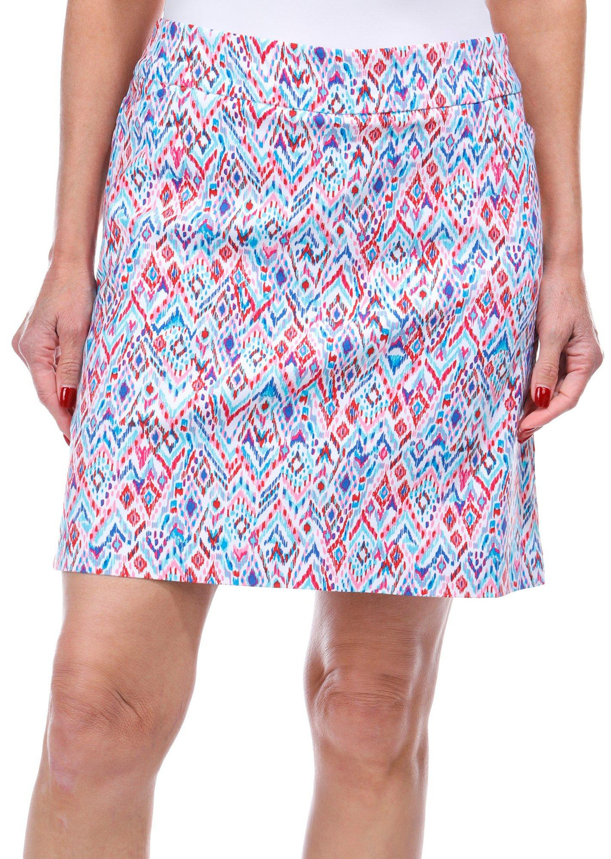 This Women’s Printed Mill Stretch Skort combines style and comfort with its vibrant print and stretchy fabric. The pull-on design offers ease and flexibility, while the skort style gives you the perfect balance of shorts and skirt. Ideal for active days or casual outings, it’s both practical and chic. The inseam measures approximately 3 inches. The outseam measures approximately 18 inches. Fabrication 77% rayon, 20% nylon & 3% spandex.