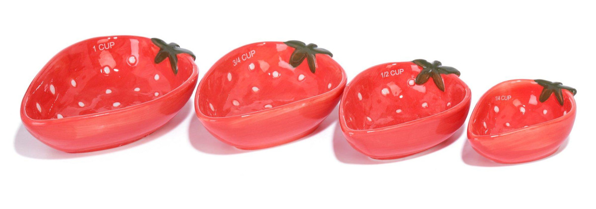 Creative Coop 4 Pk Strawberry Stoneware Measuring Cups