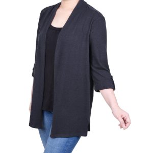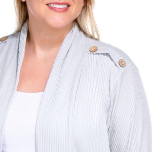 This Long Sleeve Cardigan is a stylish and versatile piece perfect for any wardrobe. Featuring an open front design, it offers a relaxed and comfortable fit. The grommet shoulder details add a modern and edgy touch, making this cardigan stand out. Ideal for layering over your favorite outfits, it combines fashion and functionality effortlessly. Fabrication is 95% rayon, 5% spandex.