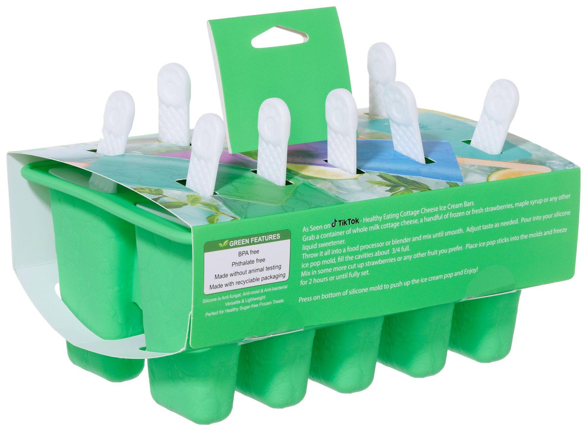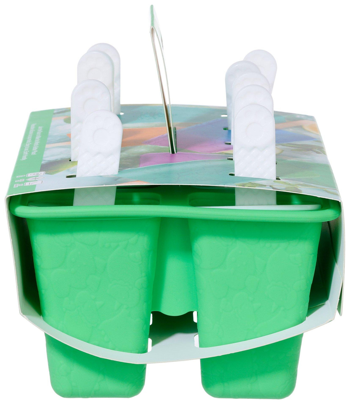 Perfect for making homeade ice pops, this silicone mold with dinosaur print makes up to 10 popsicles at a time. Just fill with your favorite ice cream, juice, yogurt, fruit or beverage, cover with included ice pop stick and freeze until firm.