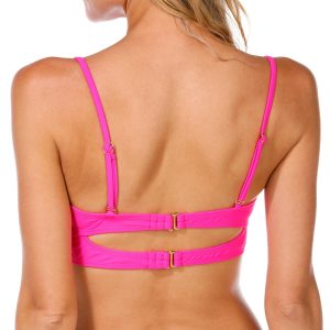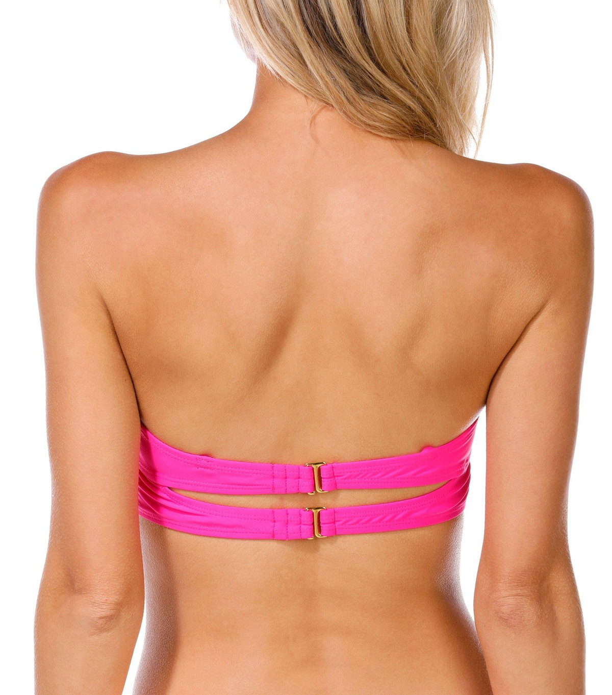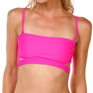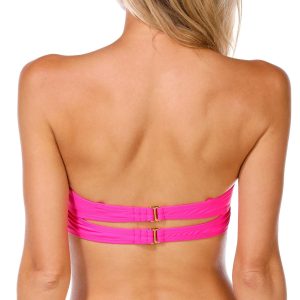 The Juniors Solid Bianca Bandeau Swim Top is a sleek and stylish choice for effortless beachwear. Designed with removable soft cups and a double back hook closure, it offers both comfort and support while maintaining a chic, minimalist look. The nylon-spandex blend ensures a smooth, flexible fit, perfect for lounging by the water or diving into adventure. Fabrication 82% nylon, 18% spandex. 100% polyester lining.