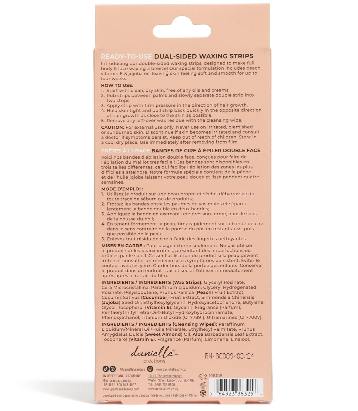 Introducing our 36 Pc ready-to-use double-sided waxing strips, designed to make full body & face waxing a breeze! Our special formulation includes Peach, Vitamin E and Jojoba Oil, leaving skin feeling soft and smooth for up to four weeks.